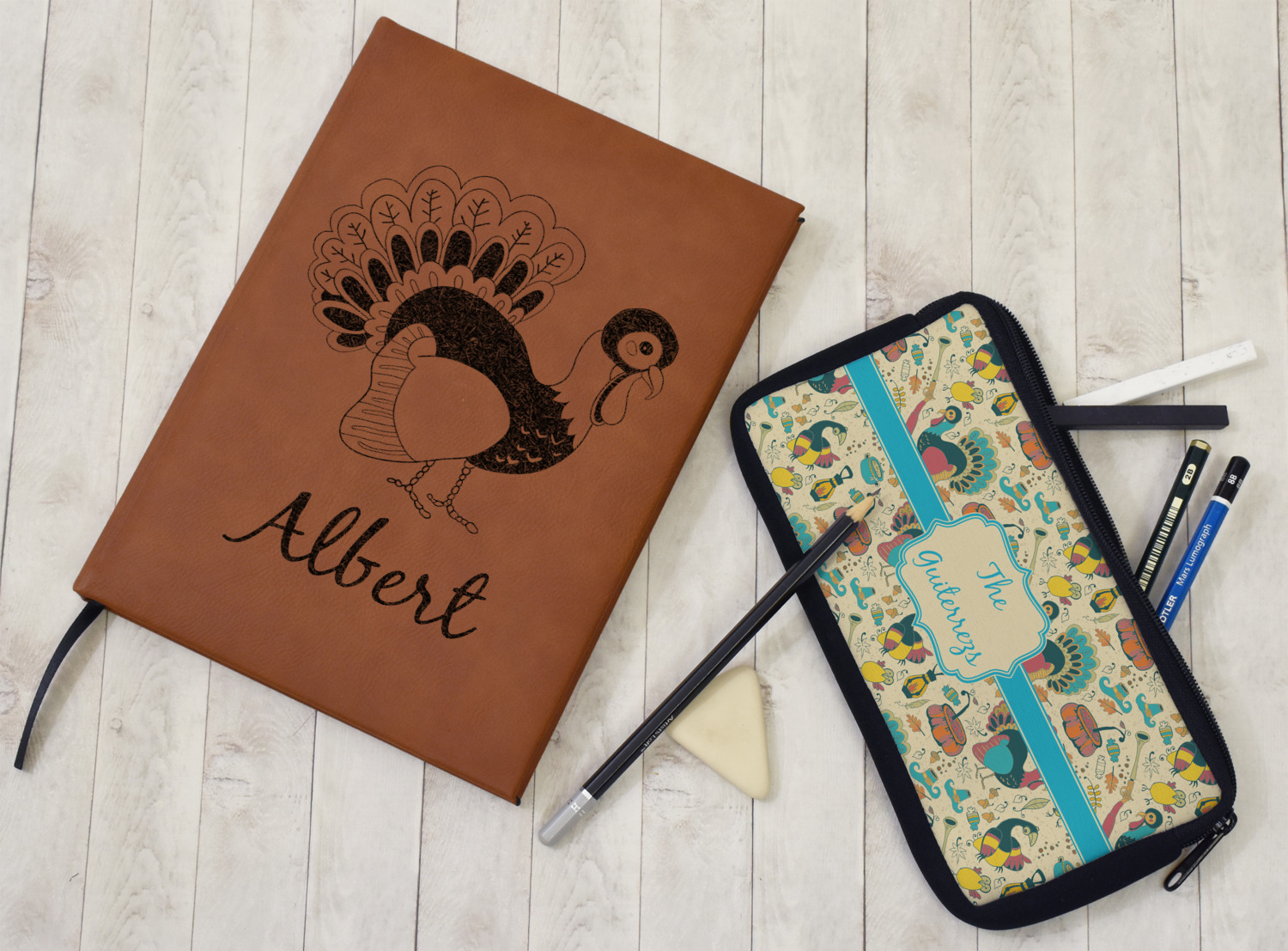 The faux leather covers are a rich cognac / rawhide color and can be customized with your design. From a simple name or monogram or a logo to a detailed mandala - the choice for customization & personalization is truly yours. Customize one of our designs or upload your own.