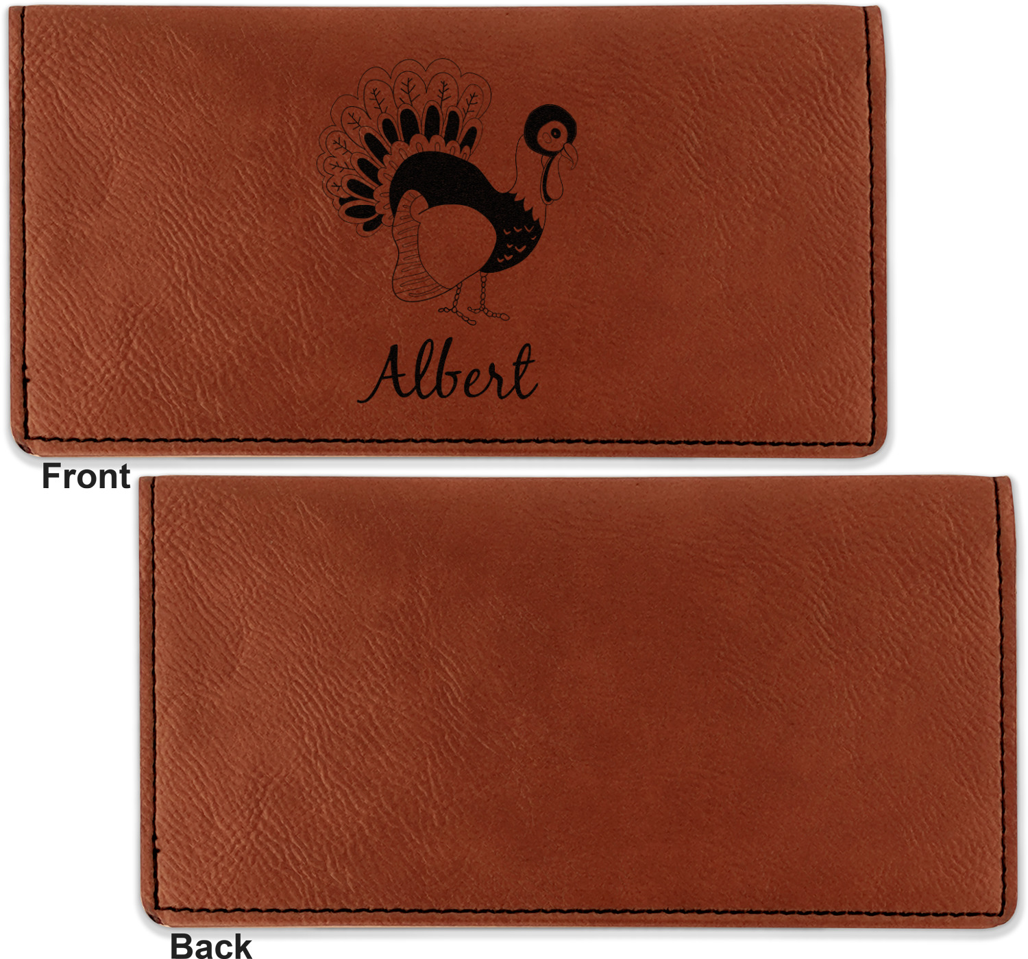 Go into our design center to start personalizing. Your checkbook cover will be laser engraved, making the graphic or text a black color. Choose a fun saying, monogram, or font to go on your checkbook cover. You have the opportunity to do it double or single sided.