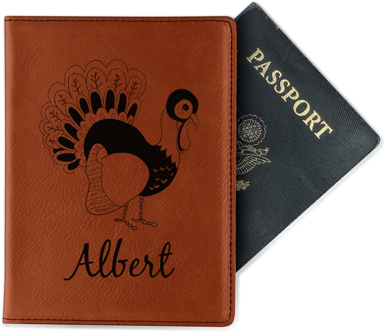 Although they are faux leather, these passport holders feel great in your hand. They are laser engraved either just on the front or the front and back. The image that is engraved onto your passport holder will be shades of black.