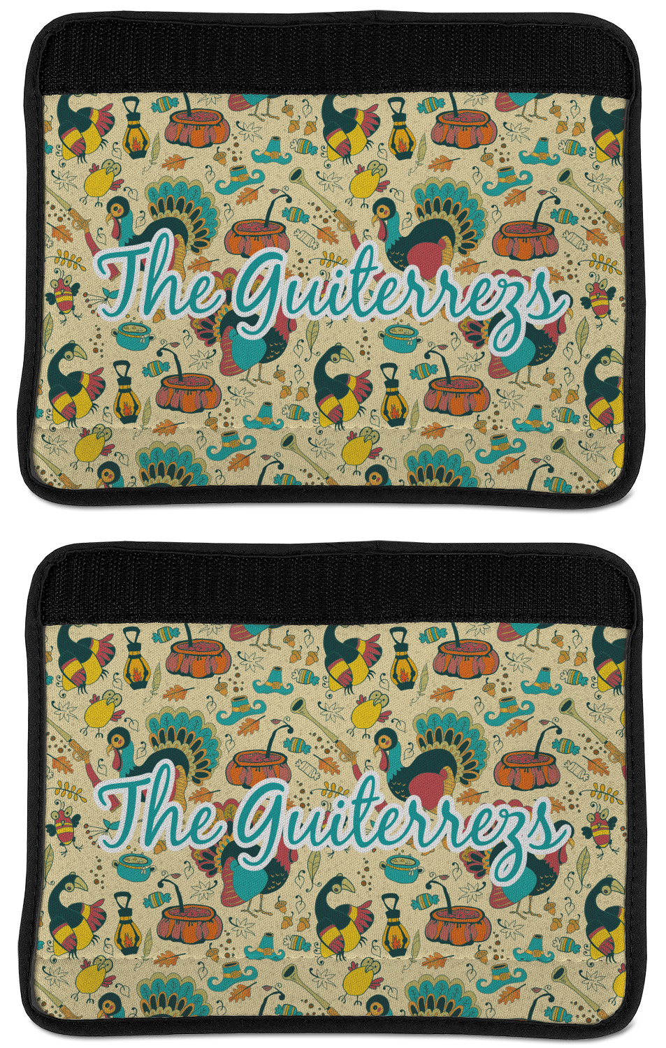 Made from neoprene, our seat belt strap covers wrap around the belt itself and have a Velcro tab for easy attachment and closure. The belt's edges are trimmed with a black polyester for a secure finish. Each cover is 9.5 by 7 inches when open and 9.5 by 2.5 inches when closed. We print your personalized design on the face of the seat belt pad.