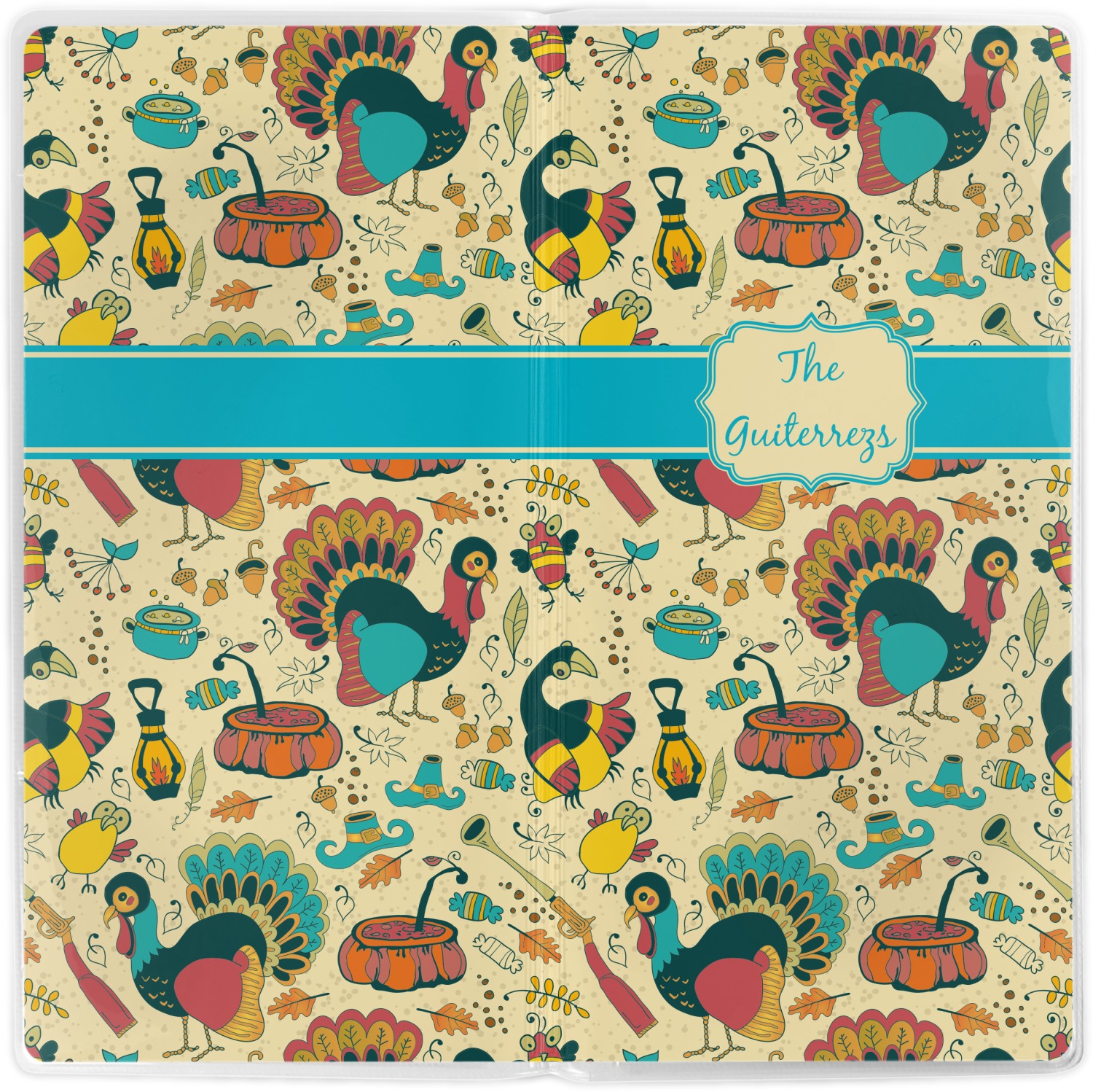 This Old Fashioned Thanksgiving design is hand drawn and includes pictures of turkey, birds, pot of food, lanterns, gun, candy, leaves and acorns; giving it a very old fashioned feel. The design has some of the traditional colors of oranges, reds and yellows, but also has a beautiful teal coloring in the turkey and the pilgrim hat; giving it a chic bold look.