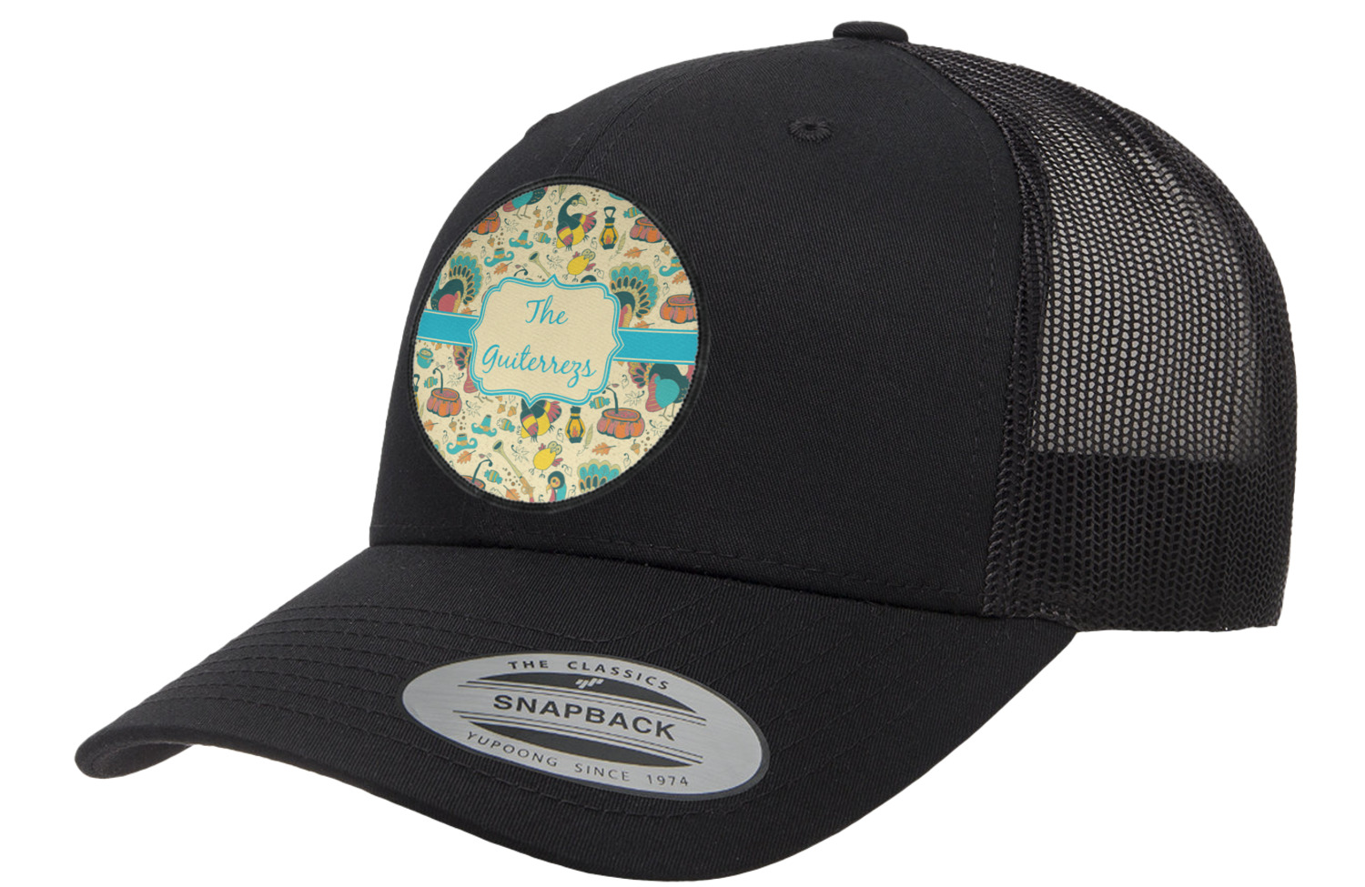 This Old Fashioned Thanksgiving design is hand drawn and includes pictures of turkey, birds, pot of food, lanterns, gun, candy, leaves and acorns; giving it a very old fashioned feel. The design has some of the traditional colors of oranges, reds and yellows, but also has a beautiful teal coloring in the turkey and the pilgrim hat; giving it a chic bold look.