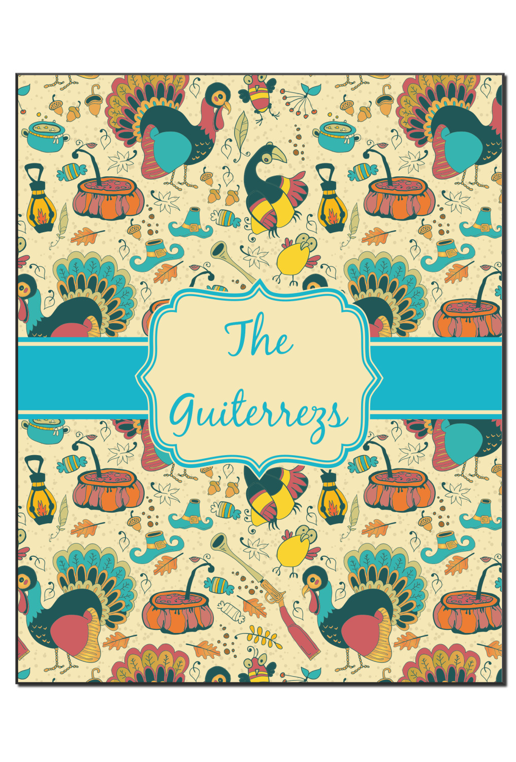 This Old Fashioned Thanksgiving design is hand drawn and includes pictures of turkey, birds, pot of food, lanterns, gun, candy, leaves and acorns; giving it a very old fashioned feel. The design has some of the traditional colors of oranges, reds and yellows, but also has a beautiful teal coloring in the turkey and the pilgrim hat; giving it a chic bold look.
