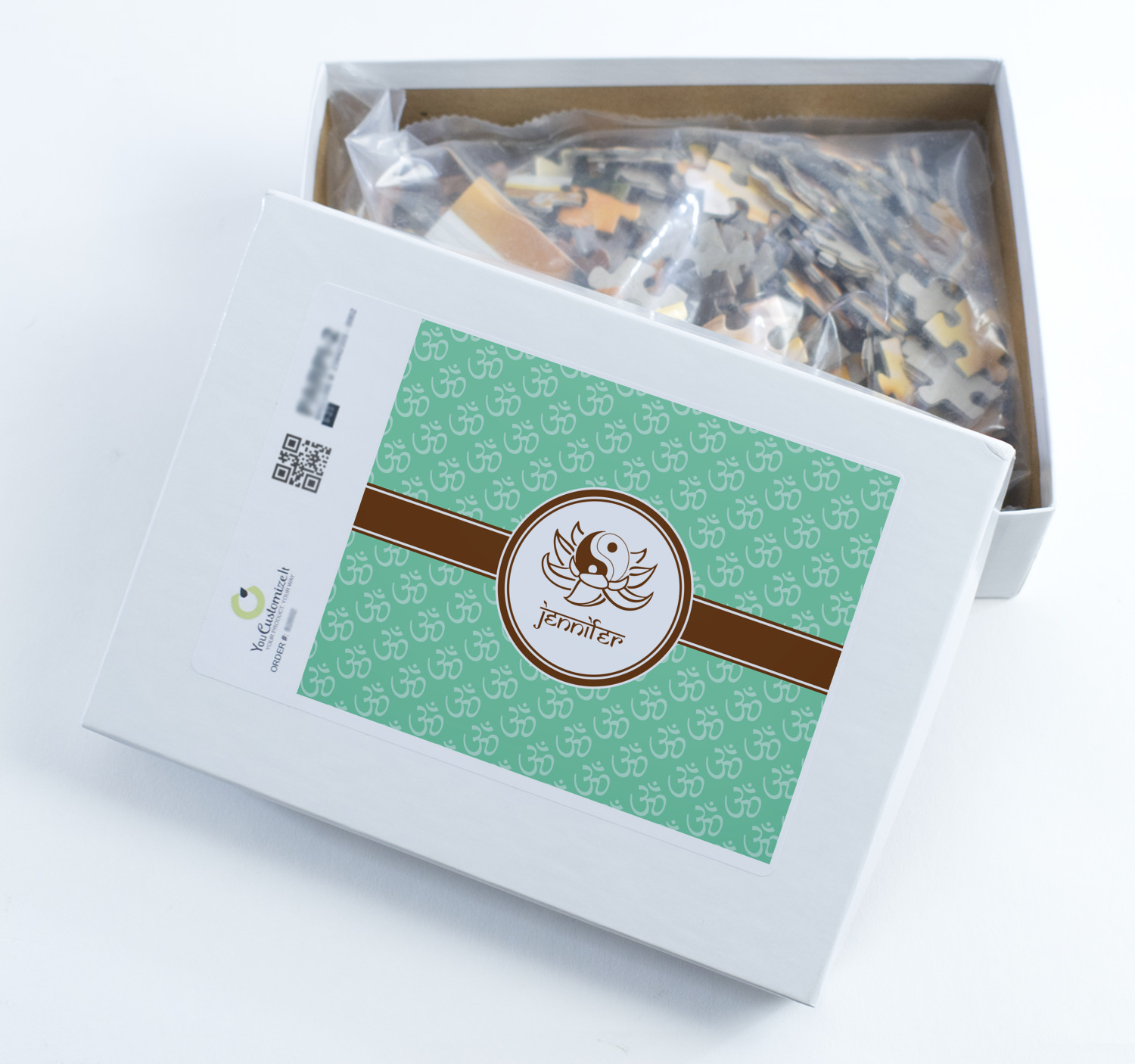 We print our puzzles on thick white chipboard in vibrant colors, then laminate the chipboard and die cut your puzzle. Your jigsaw puzzle is shipped to you in a box with the image of the puzzle on the box.