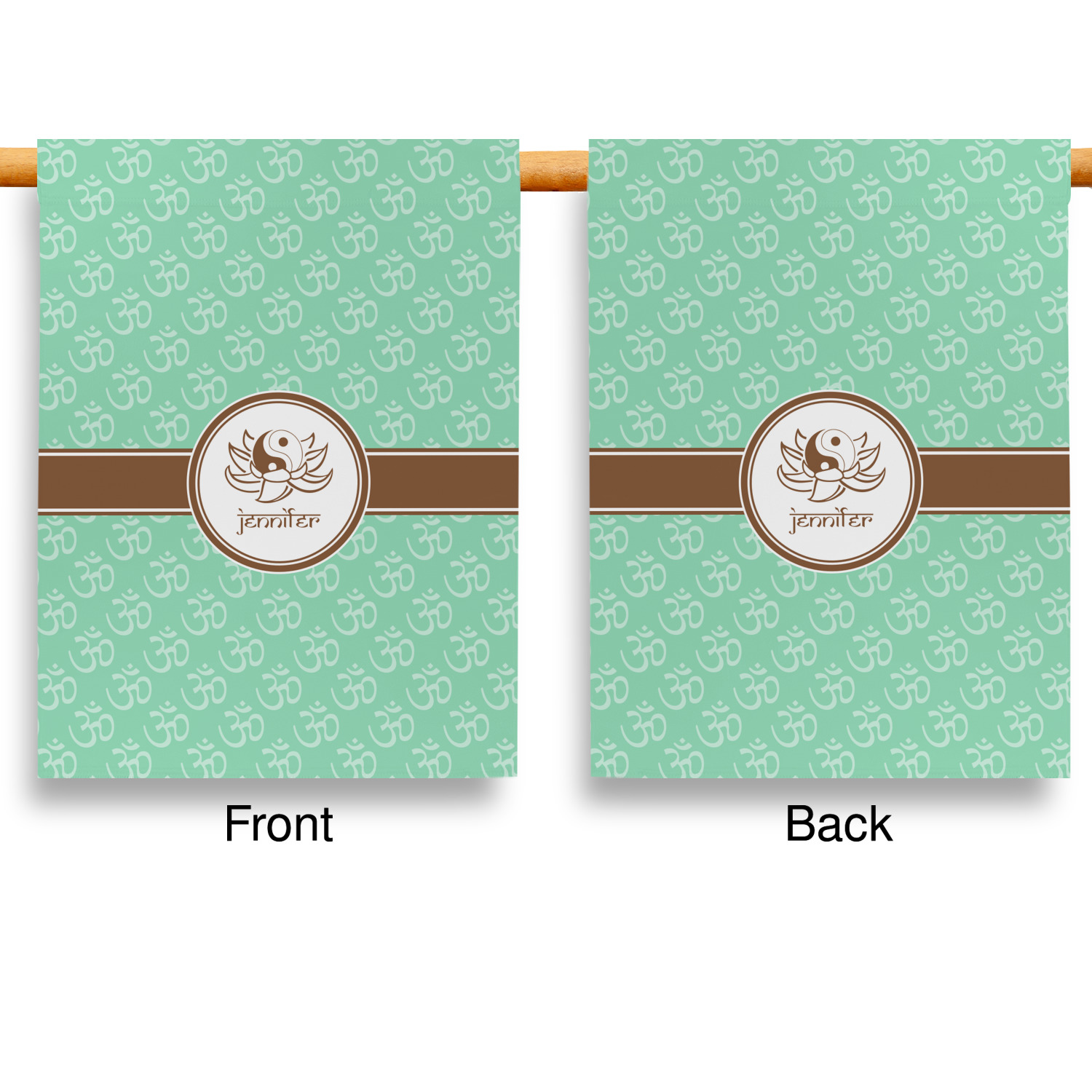 A Yin-Yang symbol is nestled in a lotus flower in the center label. Add the personalization of your choice underneath.