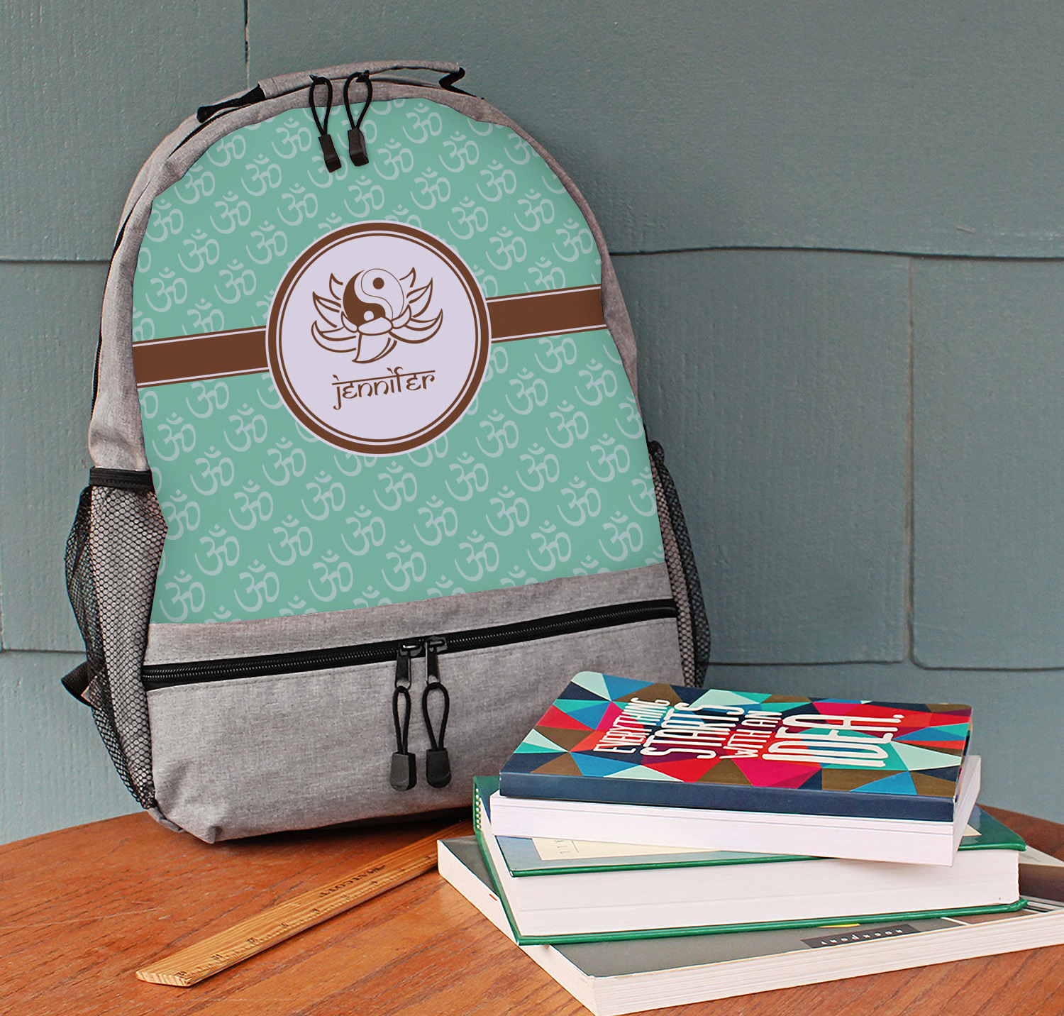 A Yin-Yang symbol is nestled in a lotus flower in the center label. Add the personalization of your choice underneath.