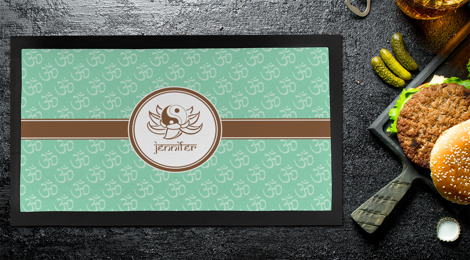 A Yin-Yang symbol is nestled in a lotus flower in the center label. Add the personalization of your choice underneath.