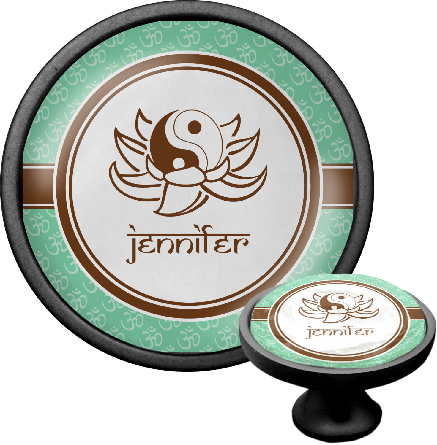A Yin-Yang symbol is nestled in a lotus flower in the center label. Add the personalization of your choice underneath.