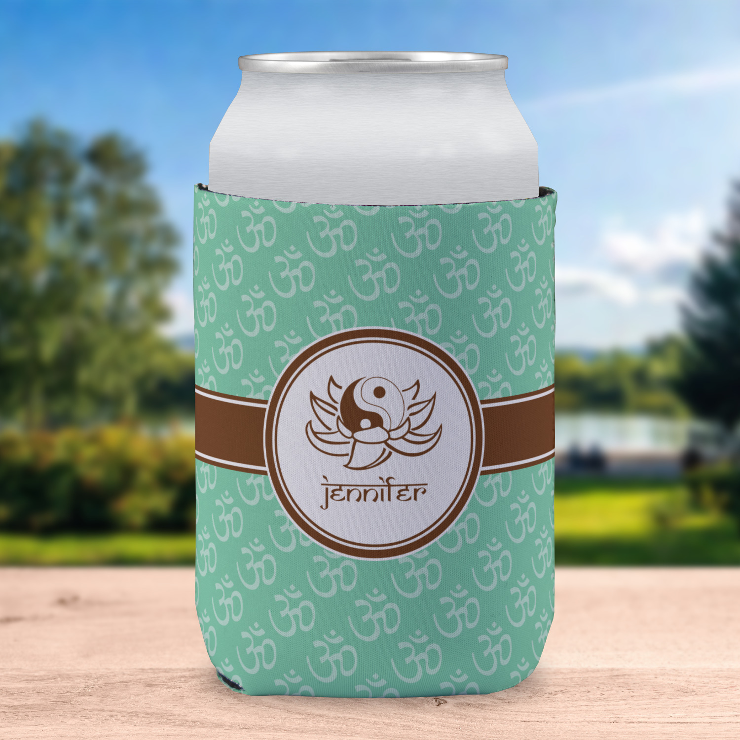 A Yin-Yang symbol is nestled in a lotus flower in the center label. Add the personalization of your choice underneath.