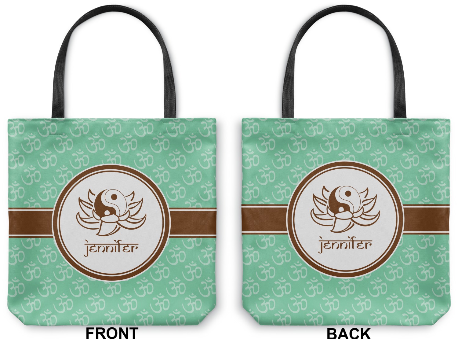 Our totes are made right here in the USA. Your design is printed on canvas fabric; the fabric is then cut and sewn on the sides and on the bottom to add an approximately 3.5 inch gusset. Black cotton handles are sewn in and reinforced. Your tote has a designs on both sides - the designs can be the same or different - the choice is yours. The inside of the tote has a black fused lining.
