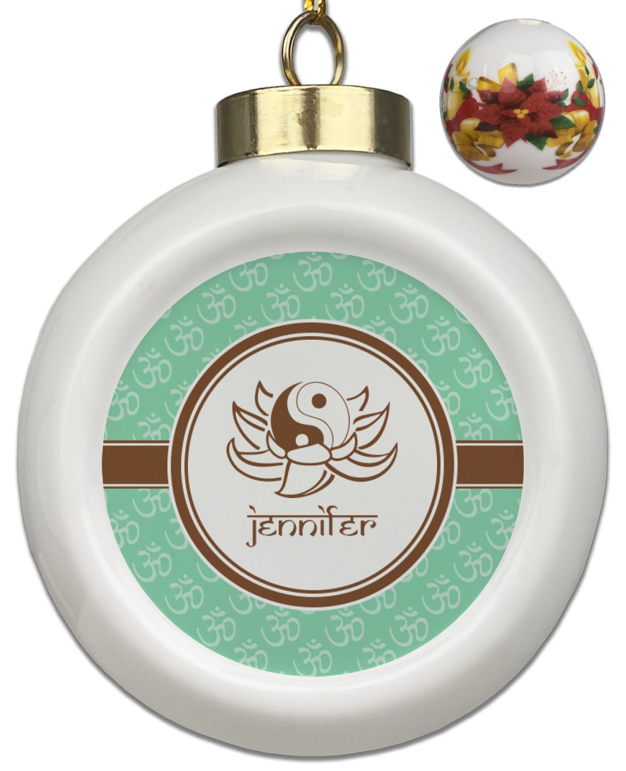 Our Christmas ornaments are a unique ceramic ball shape with a twist as it has a flat face to display your custom design! Select from one of our two design types - Christmas Tree or Poinsettia Garland - to adorn the curved back of your personal design. Each ornament measures 3H x 2.5W x 2D accompanied with a gold string accent for finishing touches to hang on your beautiful Christmas tree!