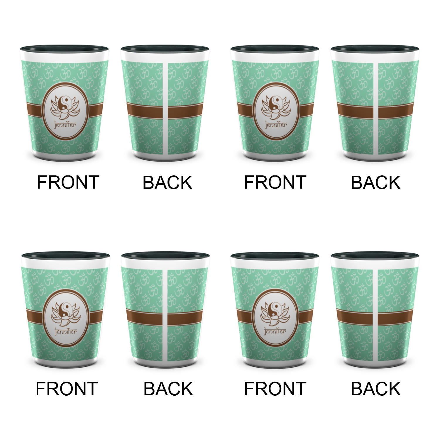 Made from ceramic these shot glasses are printed in full color with the design of your choice. These are a standard 1.5oz size and stand 2.25" tall. Available in a full white ceramic or a two-tone with a black color inside the shot glass. Buy a single or a set of 4, all of which can be designed separately to get you just what you want and need.