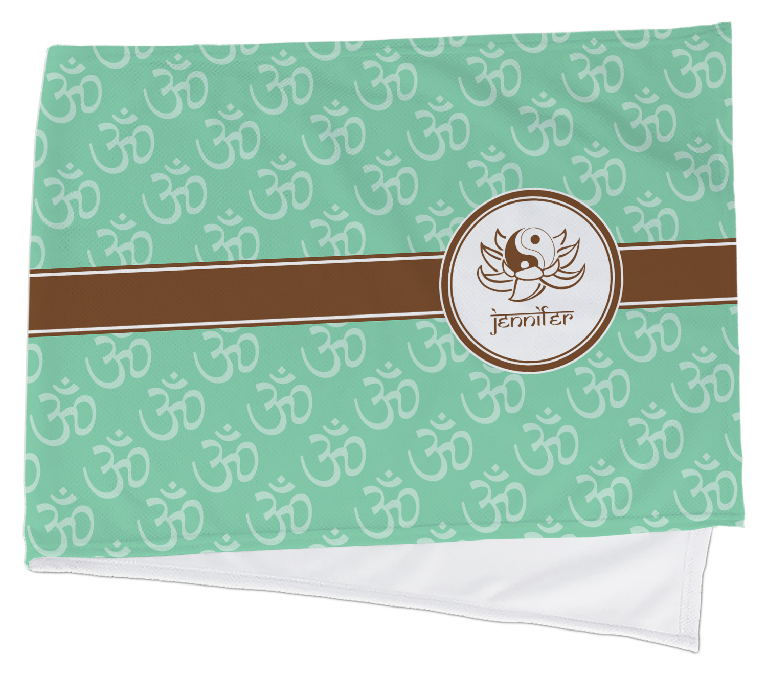 A Yin-Yang symbol is nestled in a lotus flower in the center label. Add the personalization of your choice underneath.