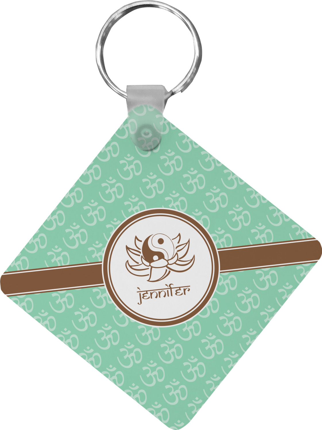 Our personalized keychains attach to the included metal, split key ring with a plastic, removable snap. Since a metal ring is included with your purchase, you have the liberty to keep your keys together on the ring, with or without your unique keychain. We offer this keychain in three different shapes: circle, heart, or diamond. We print your personalized design(s) on both sides of the key chain, and the surface has a glossy, reflective finish that only emphasizes your design. Each keychain is approximately 2.25 by 2.25 inches.