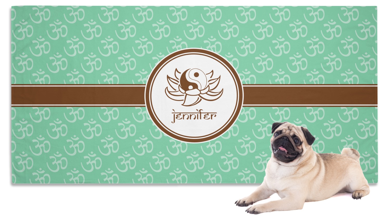 Our custom towels are crafted from a special blend of polyester and polyamide, which contributes to its lightweight, yet thoroughly absorbent nature. We craft it as such to guarantee efficiency as a convenient product; its lightweight nature makes it easy to roll up and carry along, yet it is still able to dry off even the wettest, muddiest pet. It measures at 60" x 30" and is sizable enough to dry off even the largest of pets. With our towel's gentle, soft-to-the-touch material, your pet will be sure to anticipate its warm, dry embrace. We print your personalized design on the front of the towel, while the back is white.