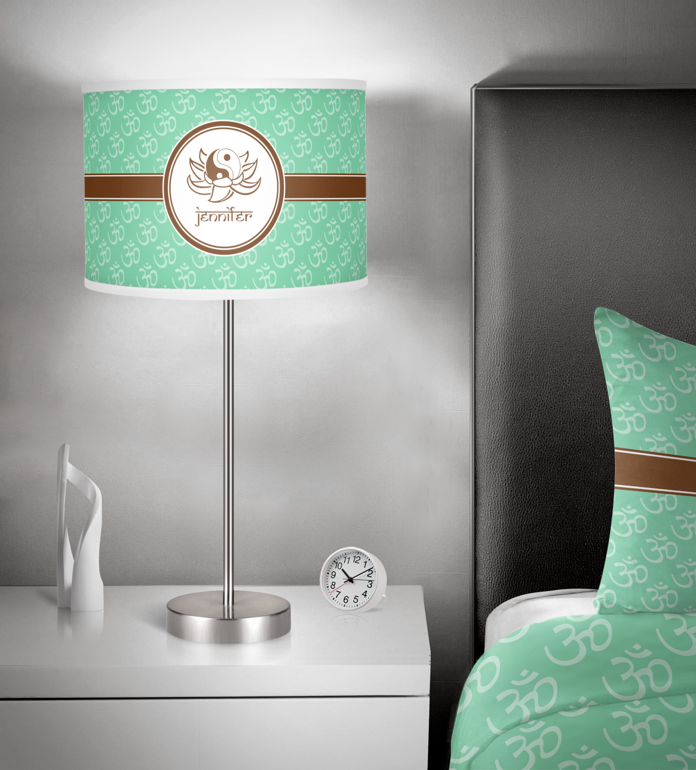 A Yin-Yang symbol is nestled in a lotus flower in the center label. Add the personalization of your choice underneath.
