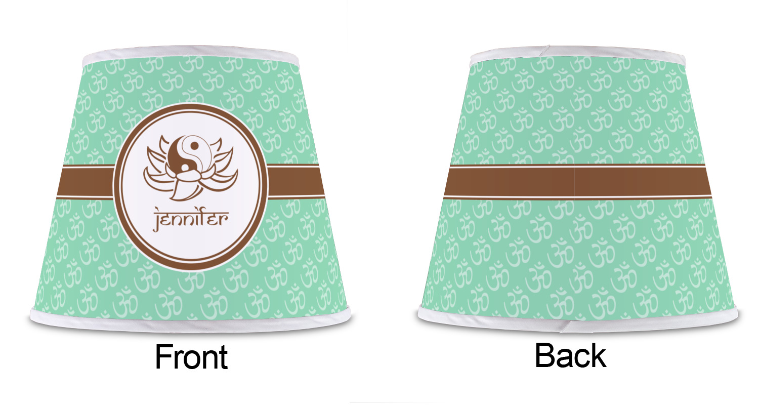 The base of this lampshade is 12 inches in diameter, and the top spans 8 inches in diameter. The total height of the lampshade is 10 inches. The angled nature of this custom lampshade concentrates the light, making it ideal for smaller spaces. This lampshade is made of matte, polyfilm, and displays your customization in its middle. The top and bottom of this colorful lamp shade are lined with a white fabric ribbon (which can be replaced with black inside the design studio) which frames your design and creates a sophisticated finish. As an UNO fitter lampshade, this unique lamp shade will fit a variety of bases.