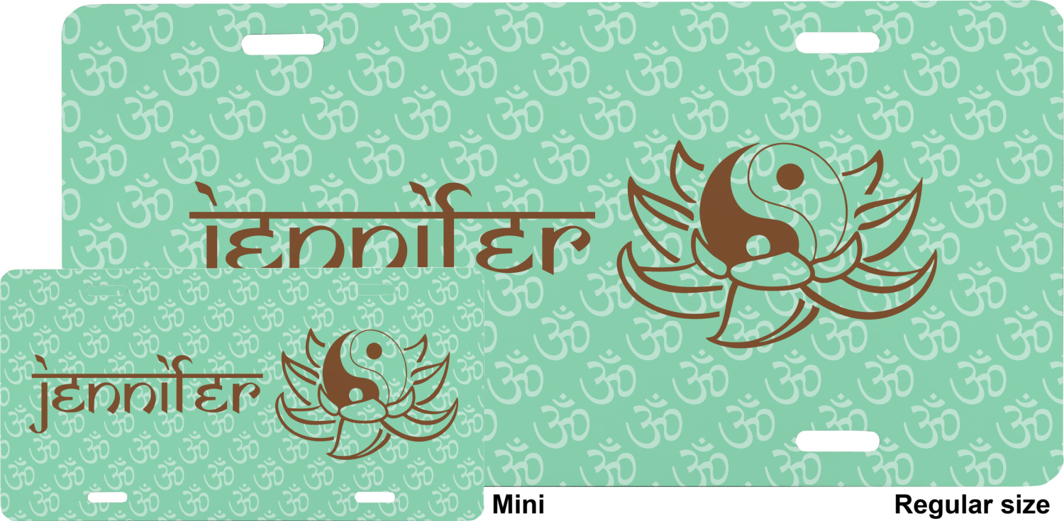 A Yin-Yang symbol is nestled in a lotus flower in the center label. Add the personalization of your choice underneath.