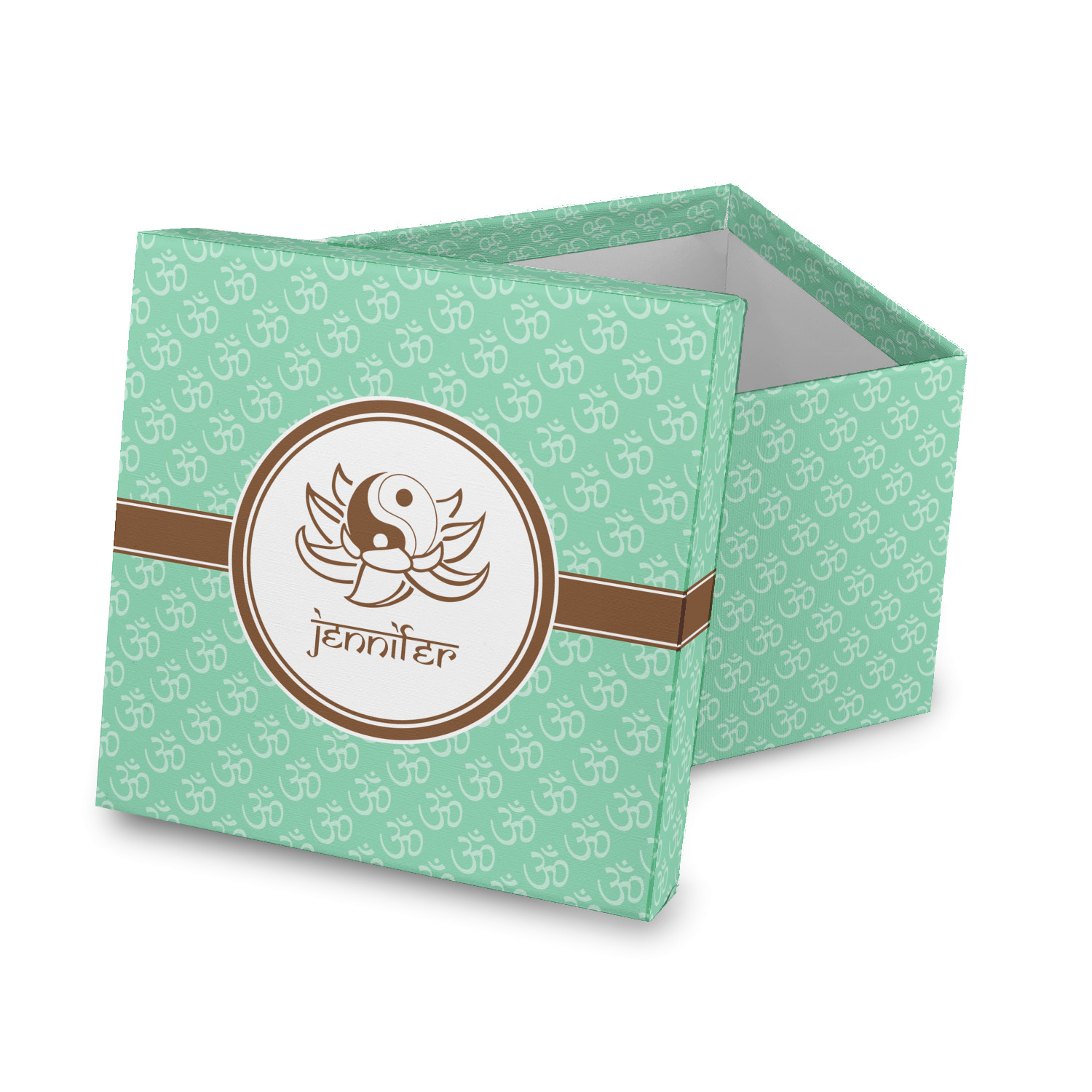 A Yin-Yang symbol is nestled in a lotus flower in the center label. Add the personalization of your choice underneath.