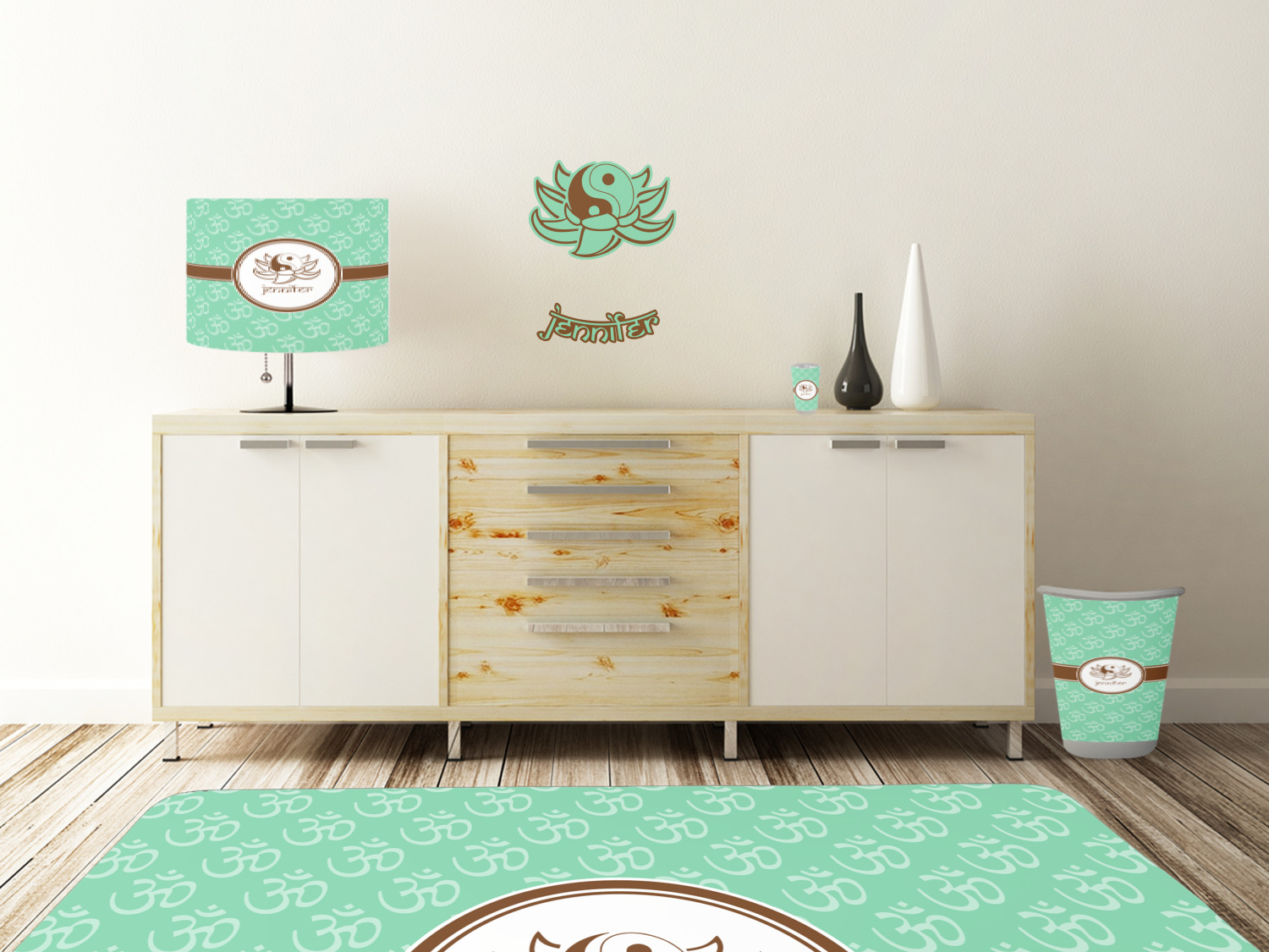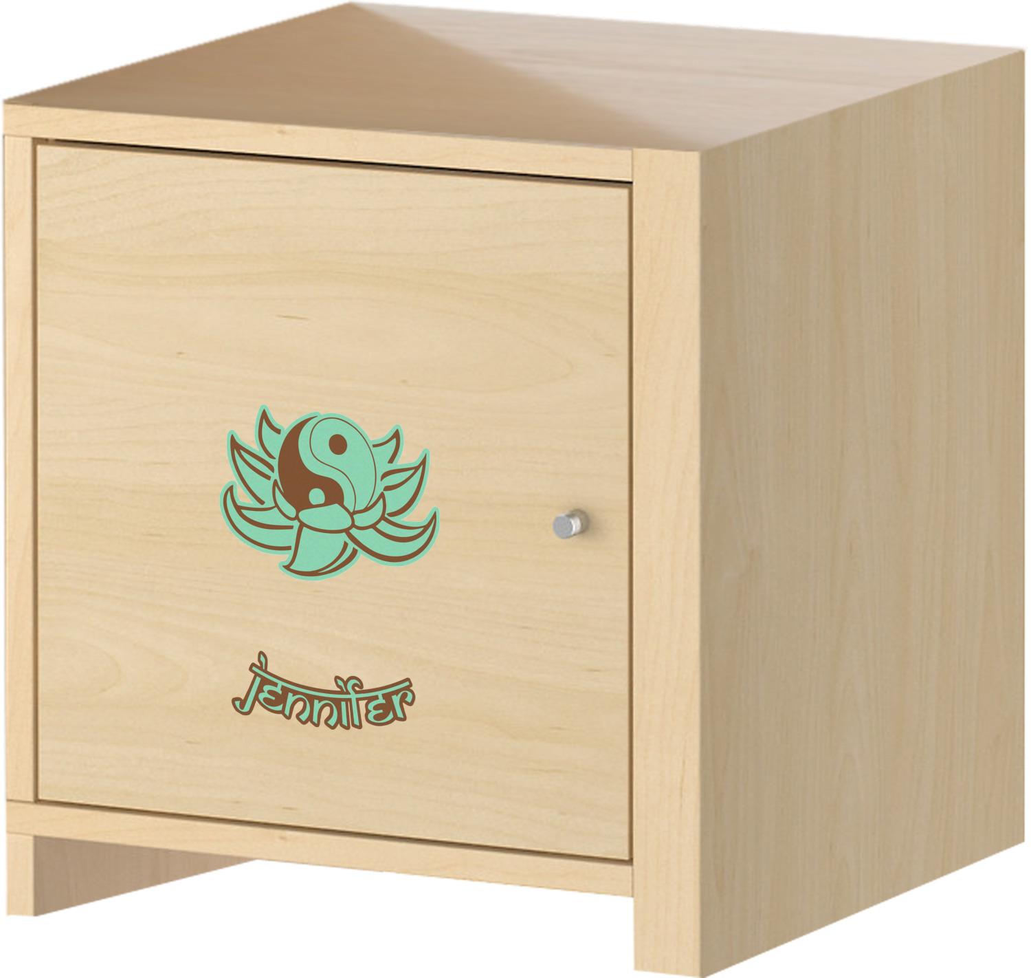 A Yin-Yang symbol is nestled in a lotus flower in the center label. Add the personalization of your choice underneath.