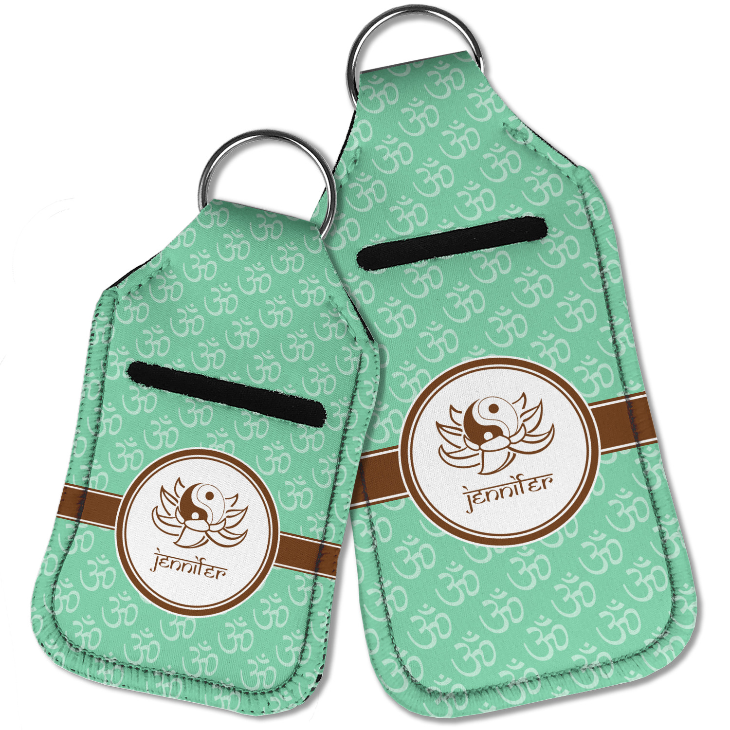 Each hand sanitizer holder comes with its own empty travel-sized, refillable hand sanitizer sure to fit snug in your customized sanitizer case! Our hand sanitizer cases are a durable, yet soft neoprene material sure to last any daily activities or travel agenda. Customize and personalize a hand sanitizer bottle holder with one of our two sizes - small (4.25" x 2.25") or large (5.5" x 2.5"). Each travel sanitizer holder comes with a keyring for attachment on bags, keys, or more!