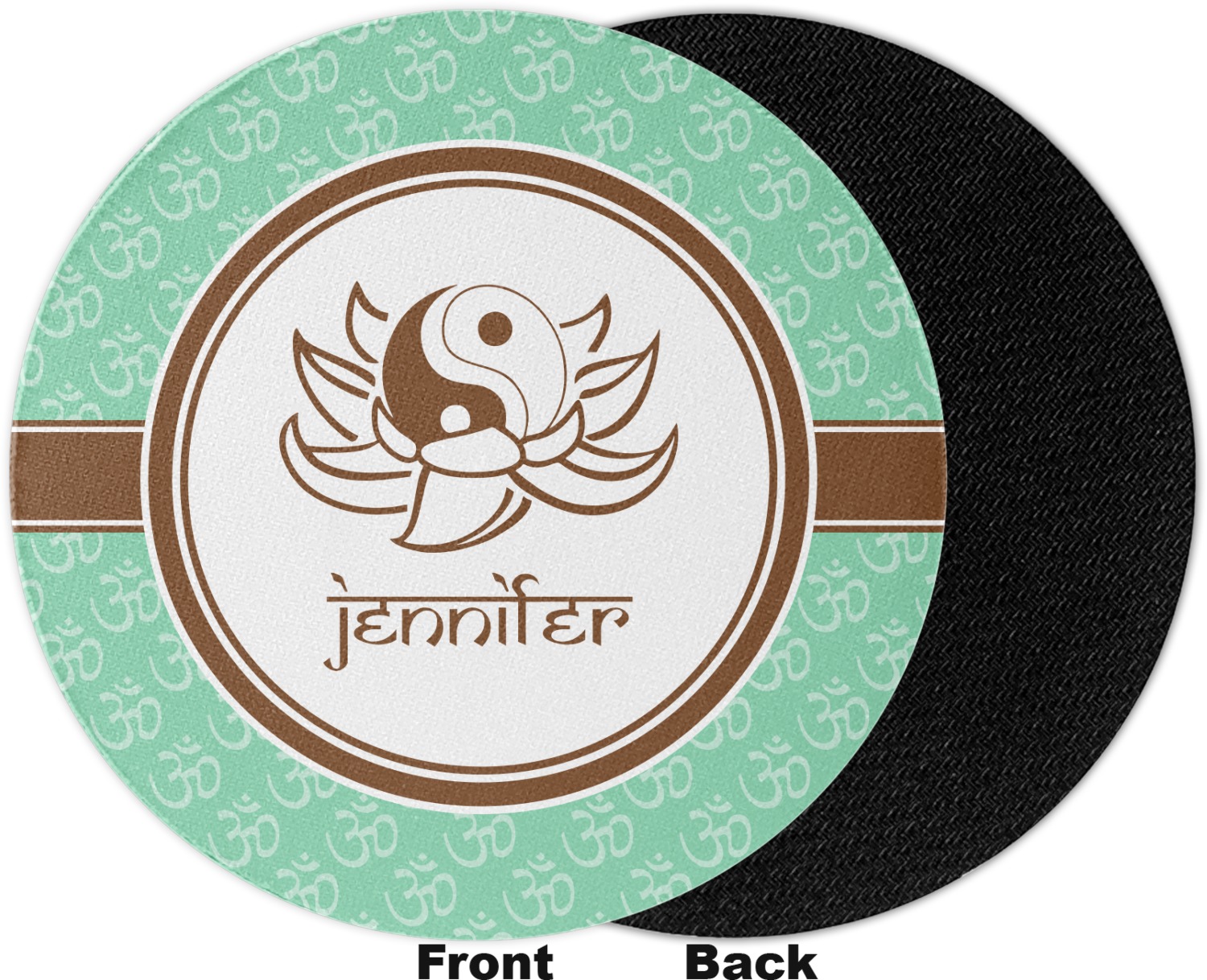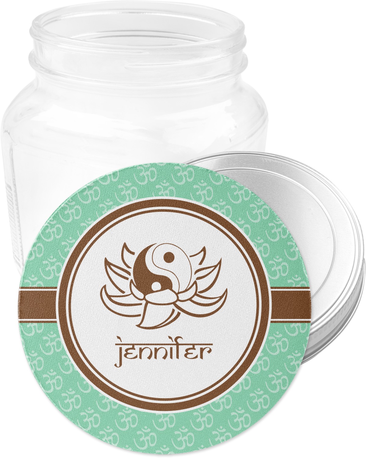 A Yin-Yang symbol is nestled in a lotus flower in the center label. Add the personalization of your choice underneath.