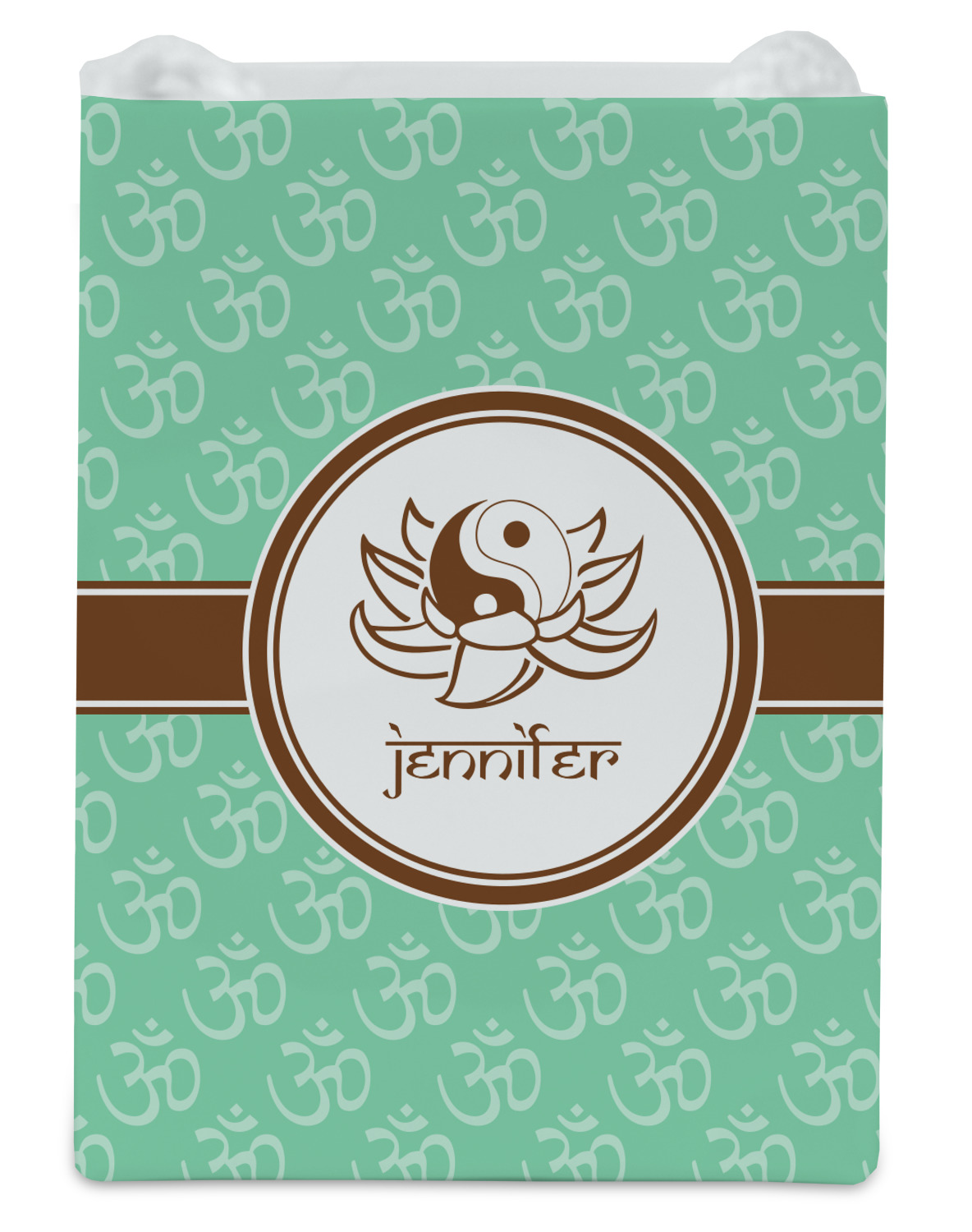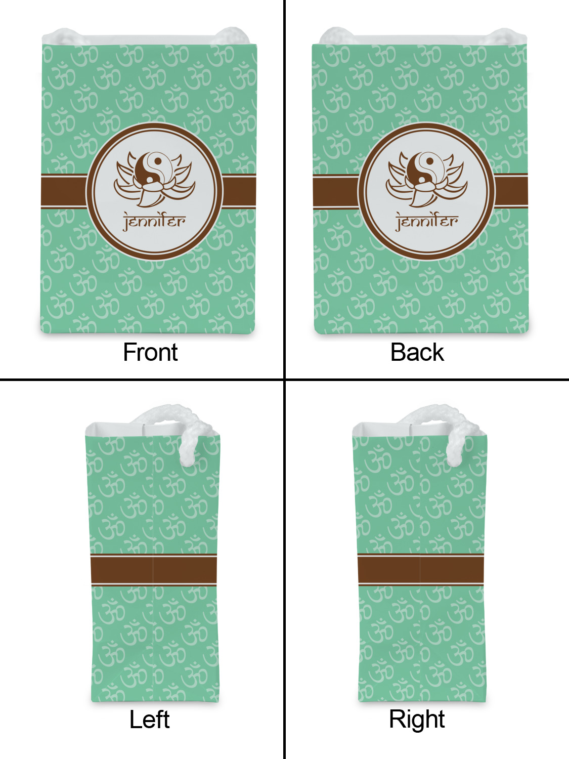 A Yin-Yang symbol is nestled in a lotus flower in the center label. Add the personalization of your choice underneath.