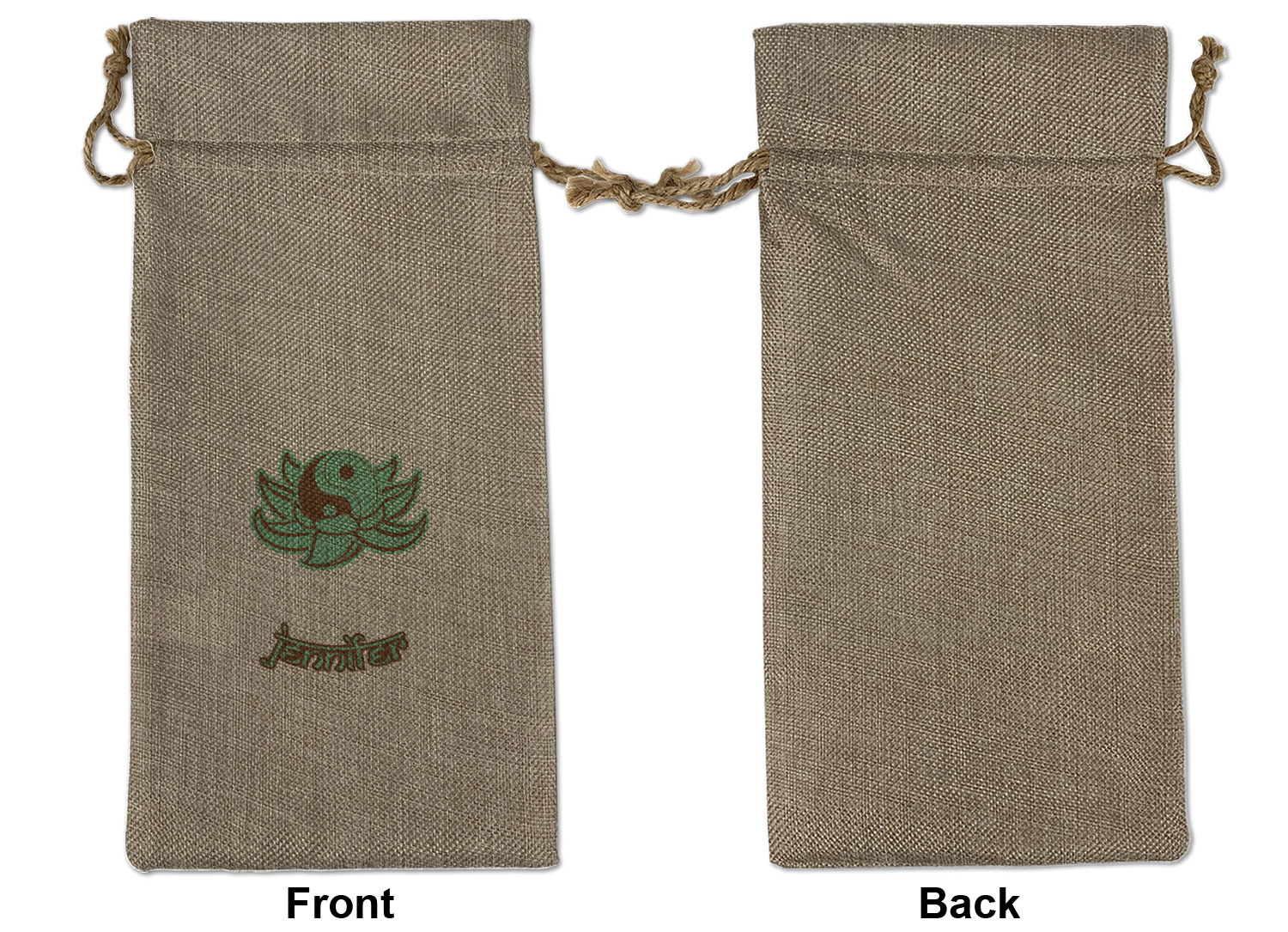 We sell our Burlap Gift Bags in 3 variant sized bags. Made with burlap polyester, each personalized bag can be secured with a twine drawstring pull. Your custom design is available to print on one side or both sides - completely up to you! The sizes of the bags measure approximately 4.5" x 6.5" for the smallest size, 6.5" x 8.0" for the medium size, and 6.5" x 13.5" for the large-sized bag.