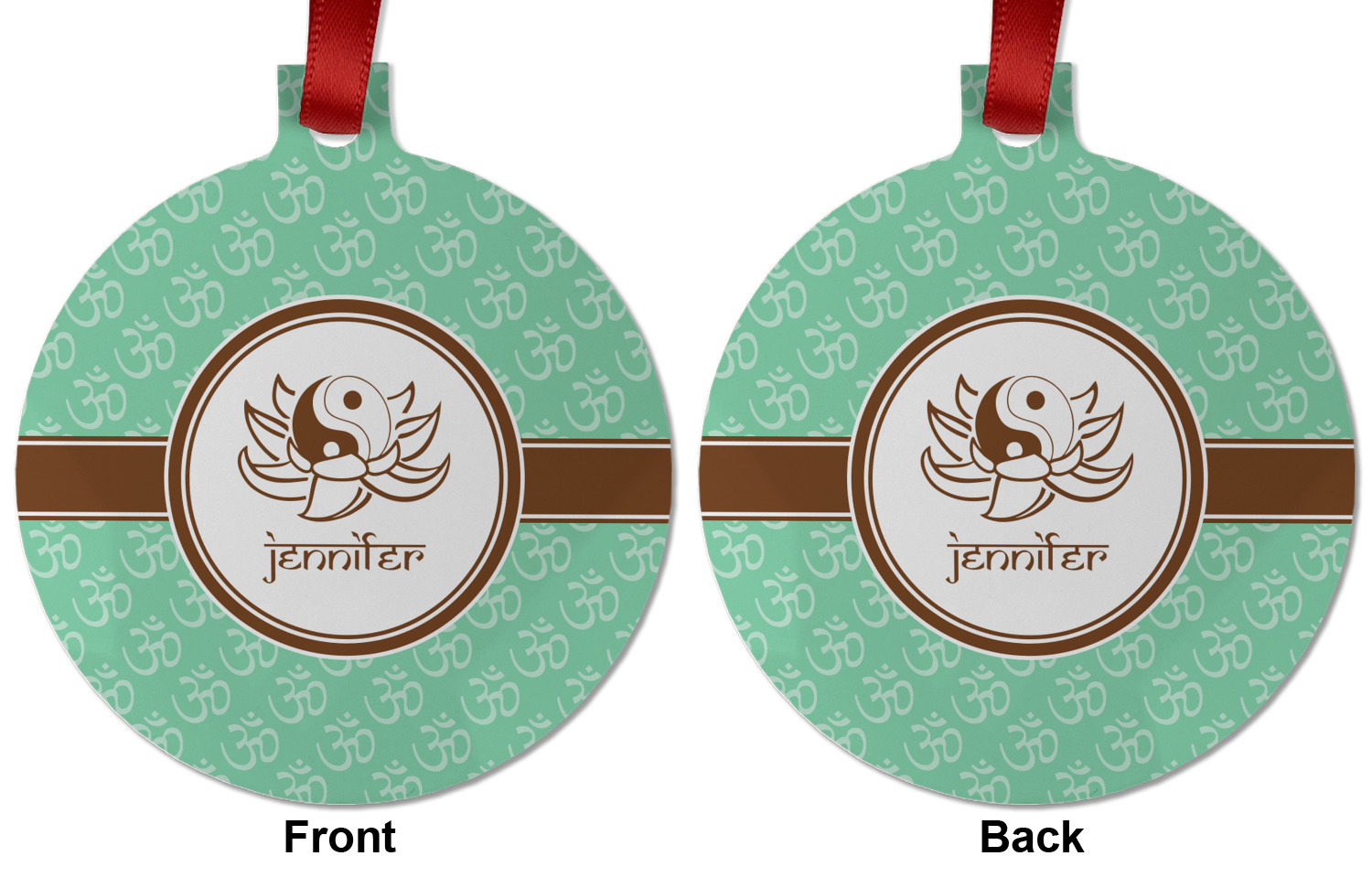 A Yin-Yang symbol is nestled in a lotus flower in the center label. Add the personalization of your choice underneath.