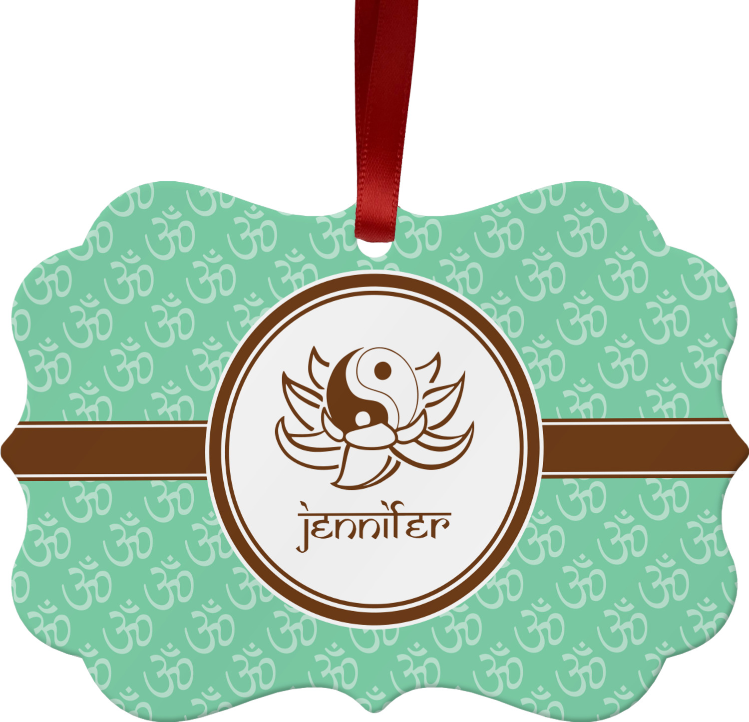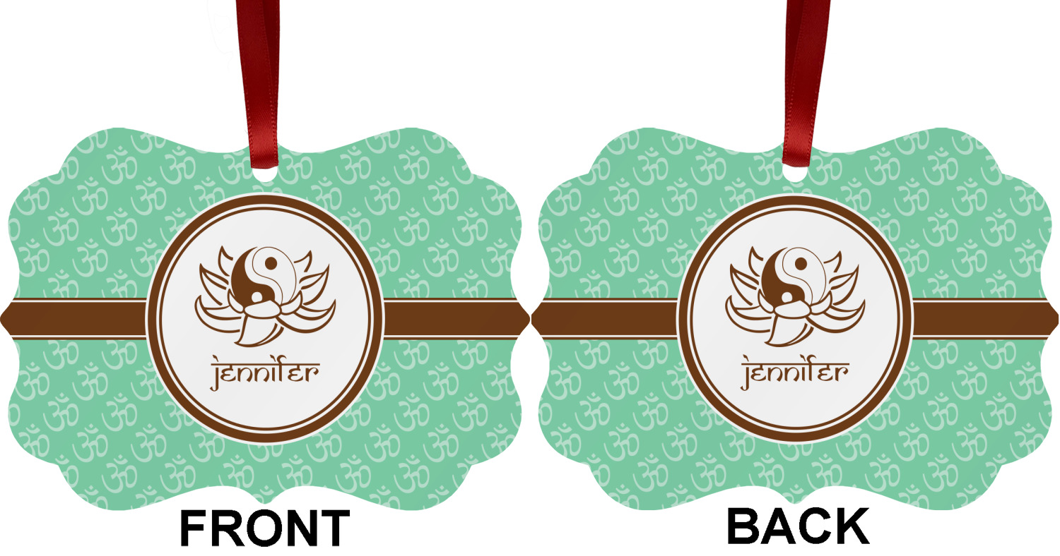 A Yin-Yang symbol is nestled in a lotus flower in the center label. Add the personalization of your choice underneath.