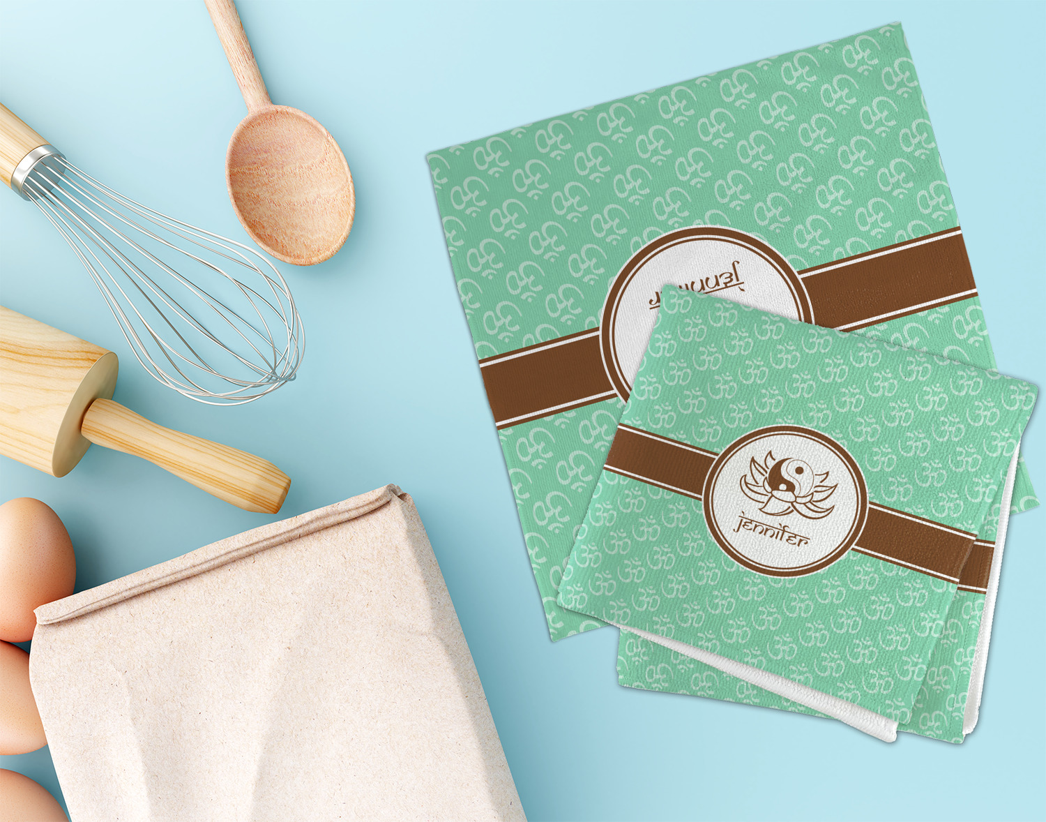 A Yin-Yang symbol is nestled in a lotus flower in the center label. Add the personalization of your choice underneath.