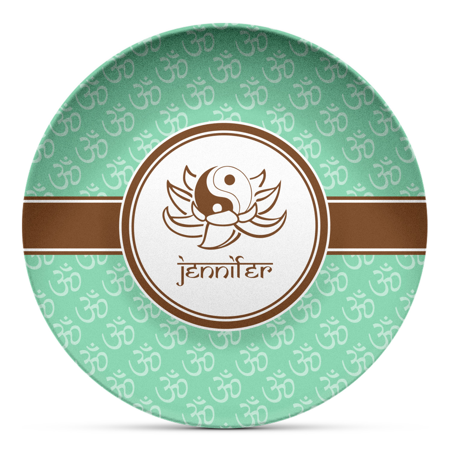 A Yin-Yang symbol is nestled in a lotus flower in the center label. Add the personalization of your choice underneath.