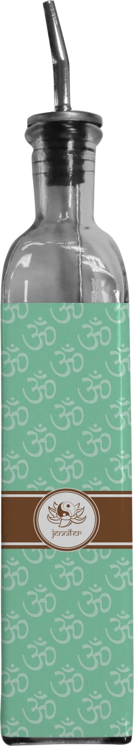 Made from recycled glass in Spain, these oil bottles have a classic, delicate look, and are accompanied by a metal spout for controlled pouring. Each bottle holds approximately 13 ounces and measures at 12 by 2 inches. We customize your glass oil bottle by applying your personalized design on the front and sides, using an adhesive. Our customizable stickers are made from high quality, gloss vinyl and are printed with waterproof, eco-solvent inks. These pieces are machine cut for accuracy and symmetry. The result is a robust, waterproof, adhesive decal that will not fade or deteriorate with time.