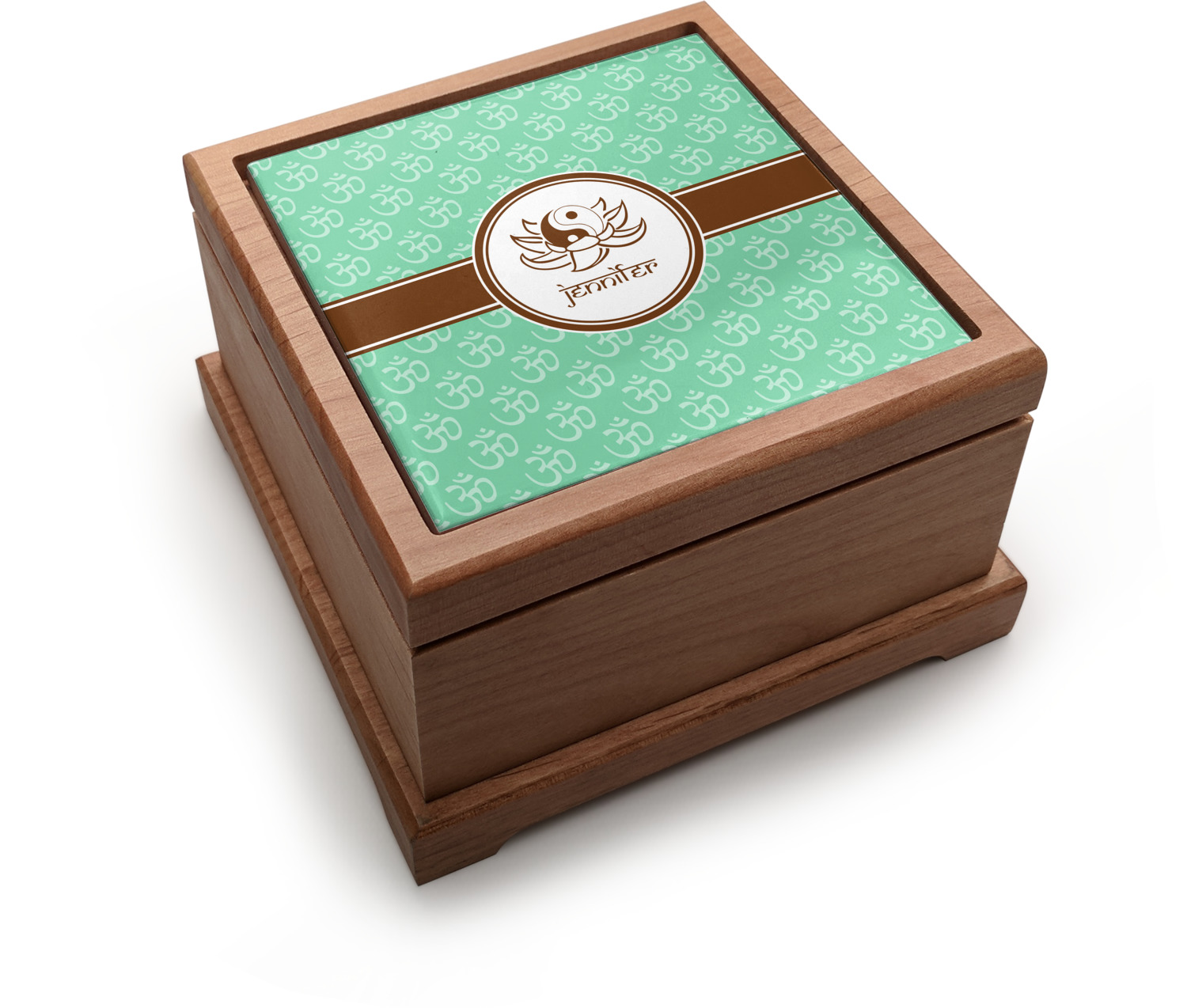 A Yin-Yang symbol is nestled in a lotus flower in the center label. Add the personalization of your choice underneath.