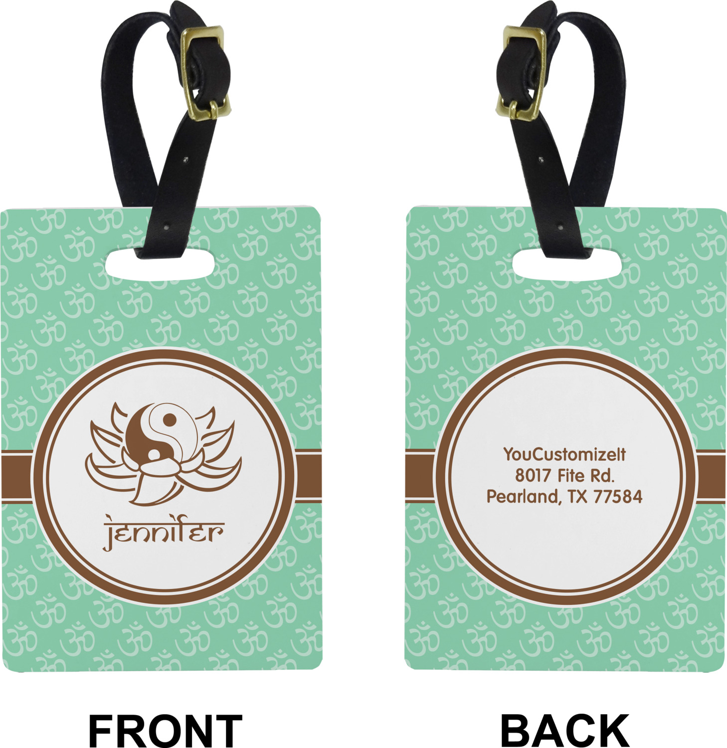 These cute luggage tags are made of a fiber-reinforced, UV-resistant plastic, making them waterproof and durable enough for both everyday use and the rugged adventures of any traveler! A leather strap with holes and a buckle is included with your purchase and can be used to attach your custom luggage tag to any suitcase, backpack, or duffel bag. You can design these travel tags as you wish; your customization will be displayed across the front, while the back will show as little or as much personal information as you want.