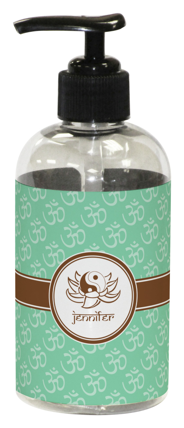 A Yin-Yang symbol is nestled in a lotus flower in the center label. Add the personalization of your choice underneath.