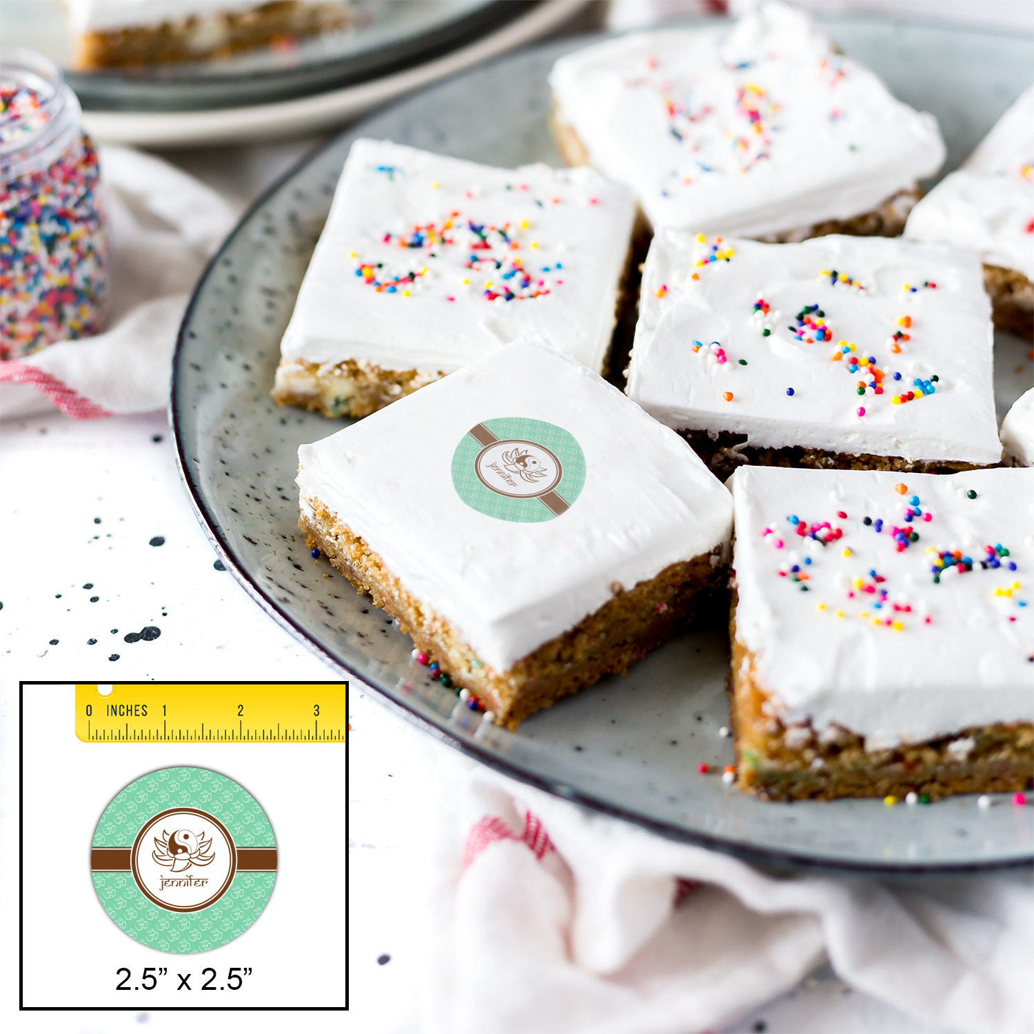 Your customized cookie toppers can be placed on top of any dessert with an icing top.The icing helps adhere the cookie topper to the dessert.