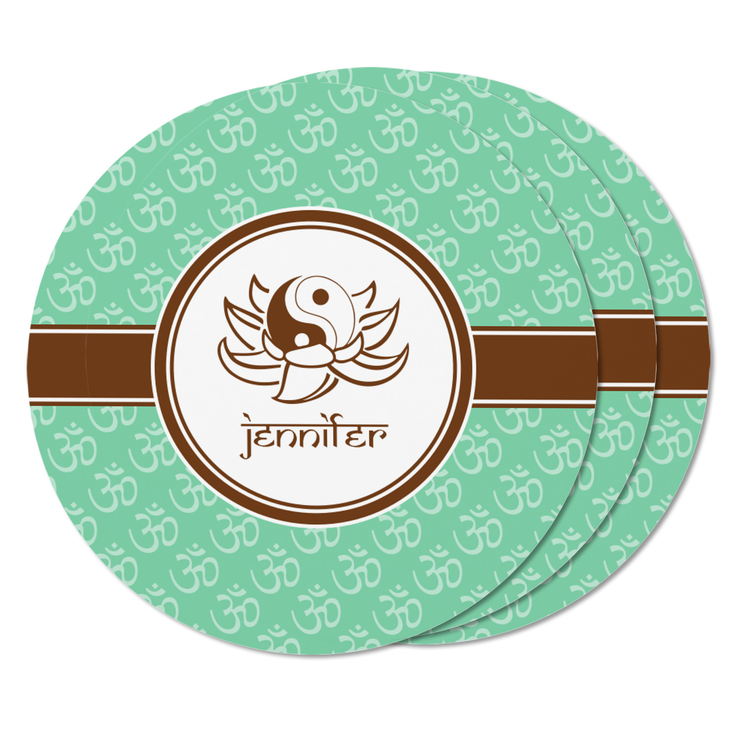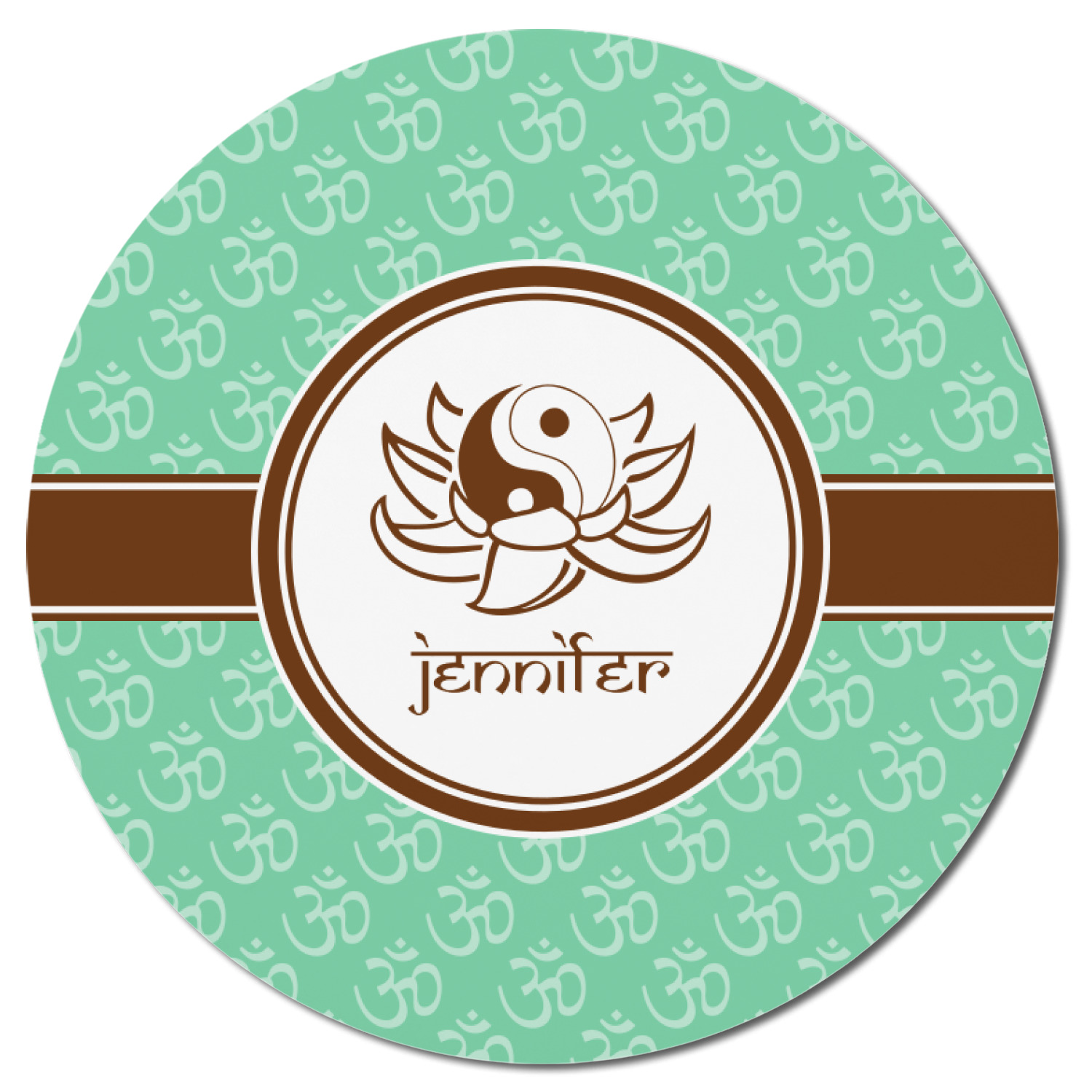 A Yin-Yang symbol is nestled in a lotus flower in the center label. Add the personalization of your choice underneath.