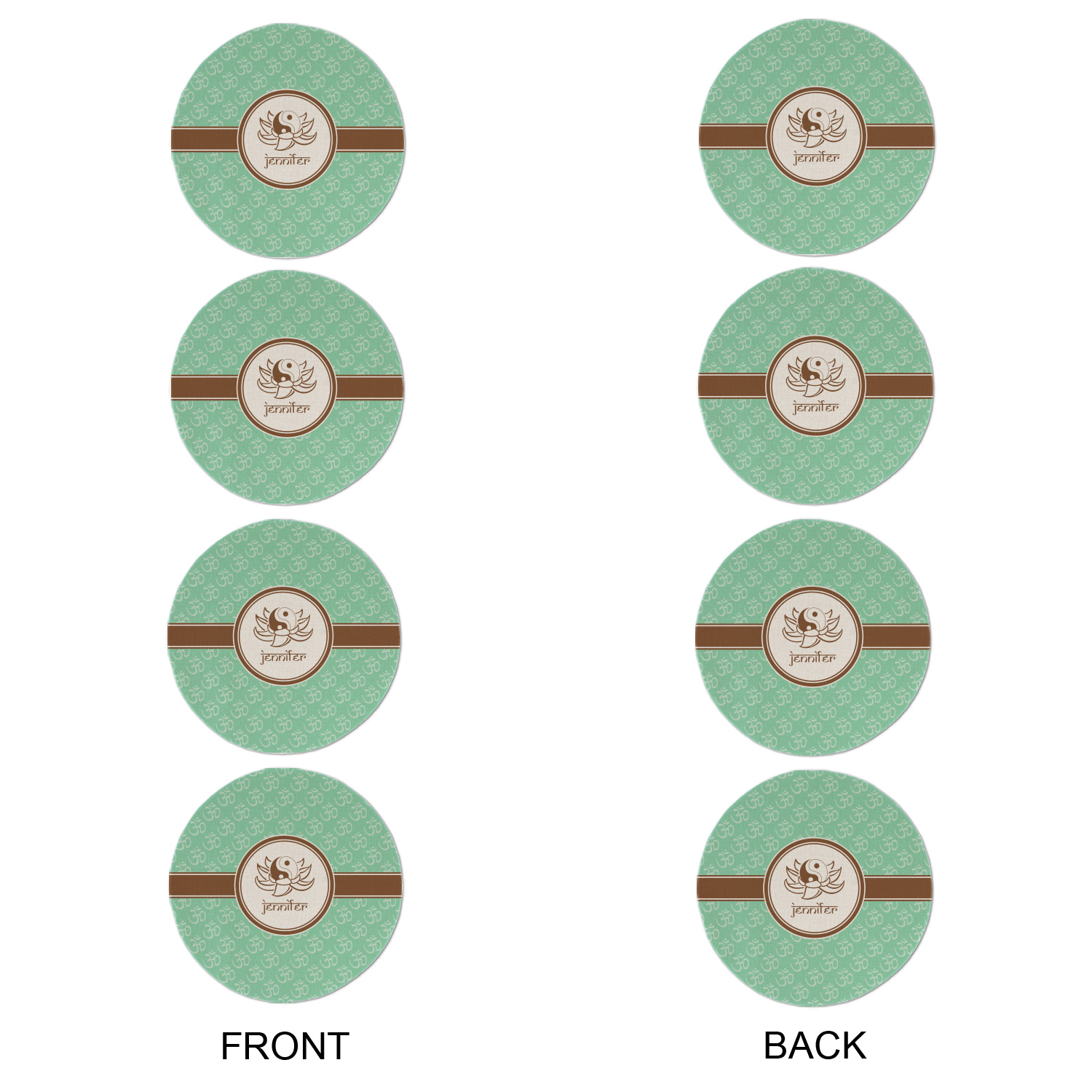 A Yin-Yang symbol is nestled in a lotus flower in the center label. Add the personalization of your choice underneath.