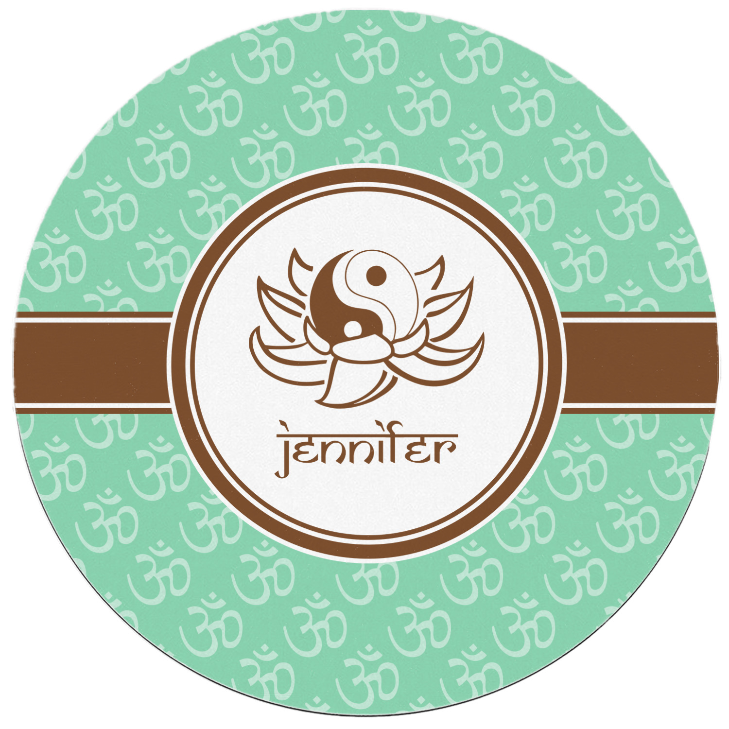 A Yin-Yang symbol is nestled in a lotus flower in the center label. Add the personalization of your choice underneath.