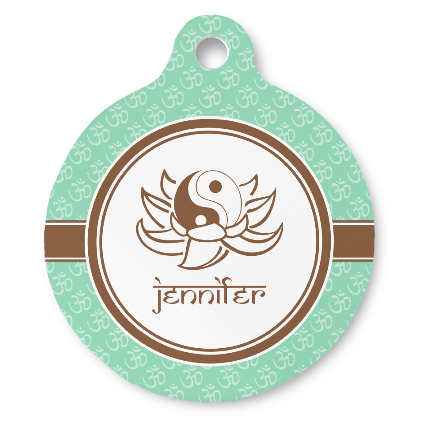 A Yin-Yang symbol is nestled in a lotus flower in the center label. Add the personalization of your choice underneath.