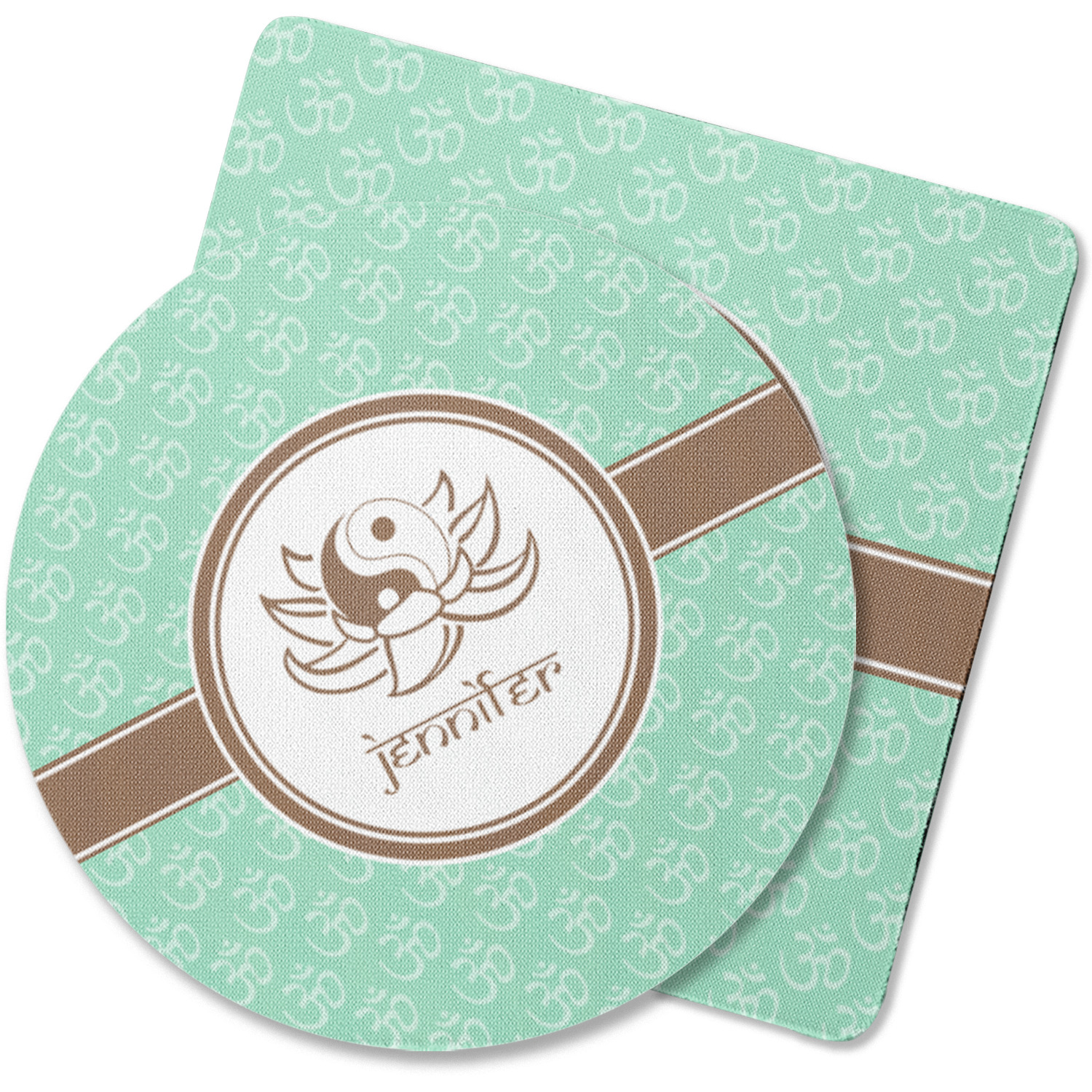 A Yin-Yang symbol is nestled in a lotus flower in the center label. Add the personalization of your choice underneath.