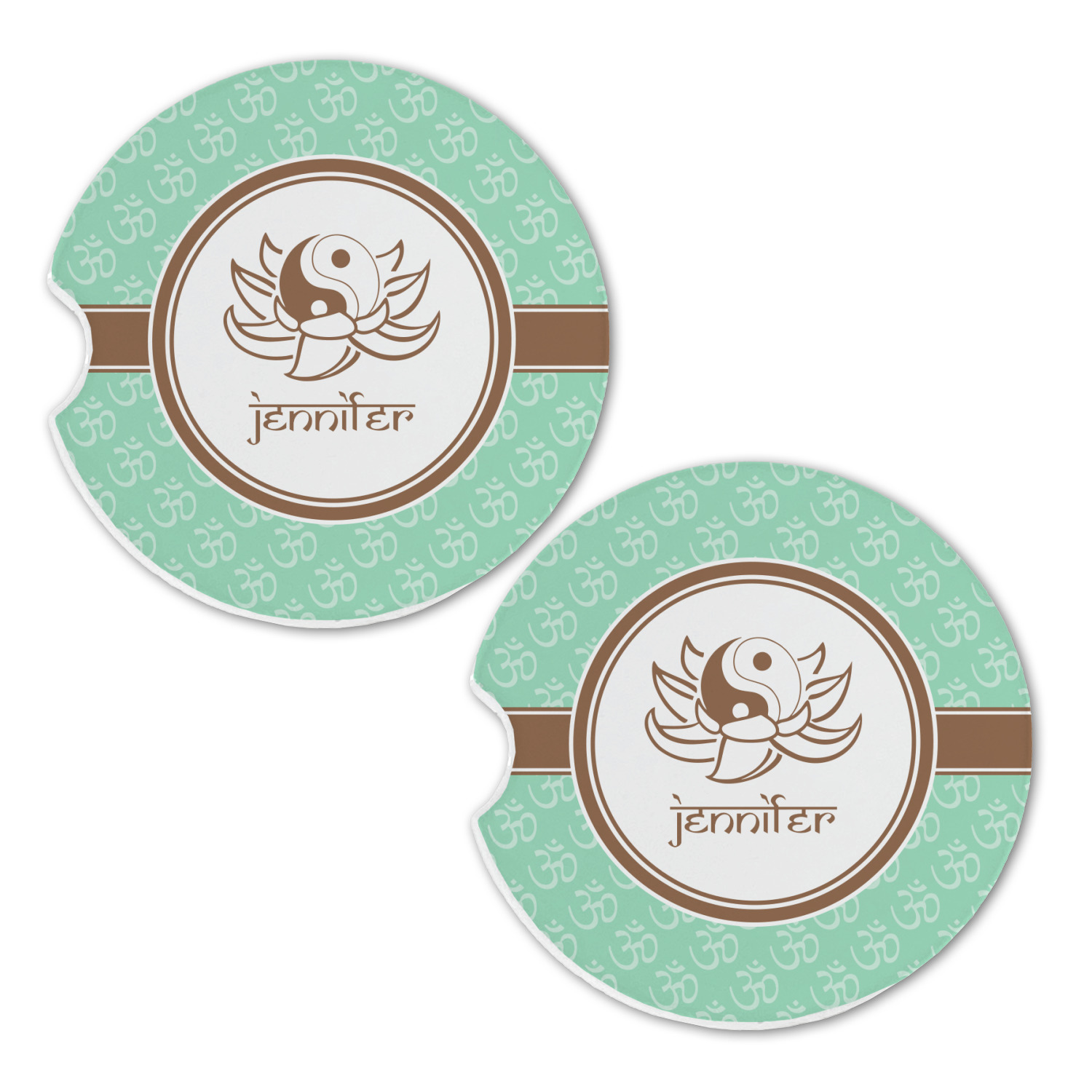 A Yin-Yang symbol is nestled in a lotus flower in the center label. Add the personalization of your choice underneath.