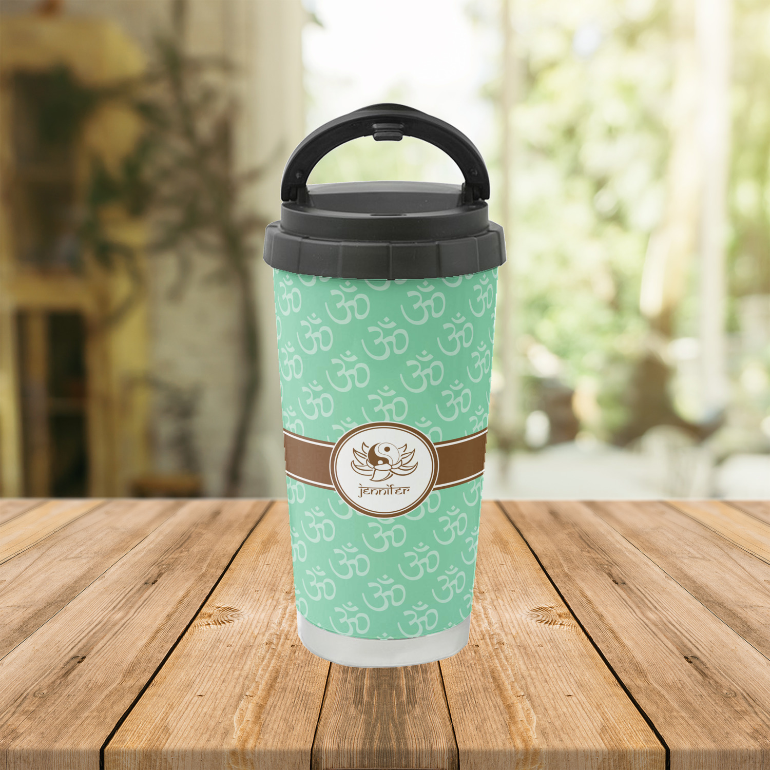 A Yin-Yang symbol is nestled in a lotus flower in the center label. Add the personalization of your choice underneath.