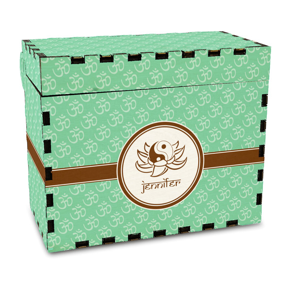 A Yin-Yang symbol is nestled in a lotus flower in the center label. Add the personalization of your choice underneath.