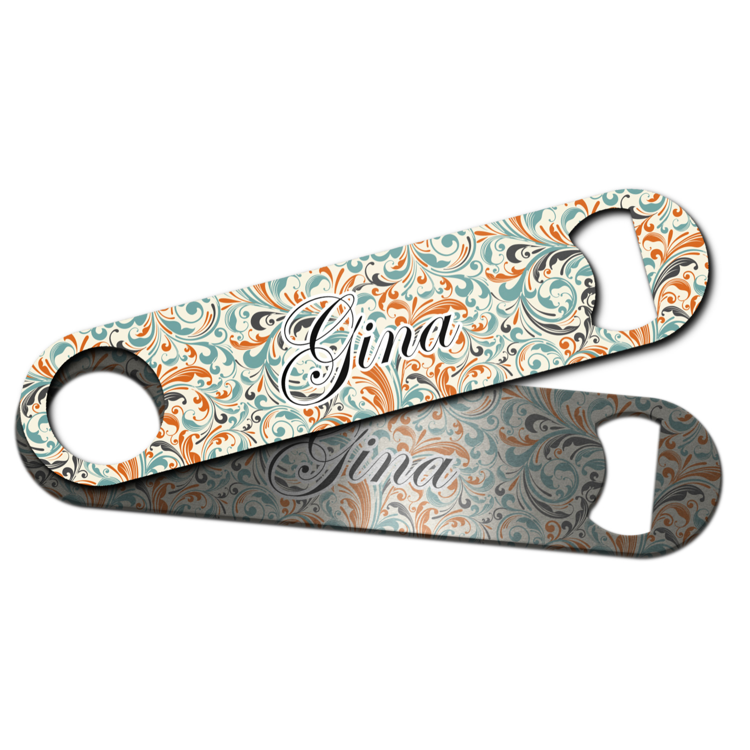 Stop struggling with the caps or your bottled beverages by purchasing one of our personalized bottle openers! These wrench-like custom bar blades are built to last. Customize one for your home's bar, or as a practical gift for a loved one!