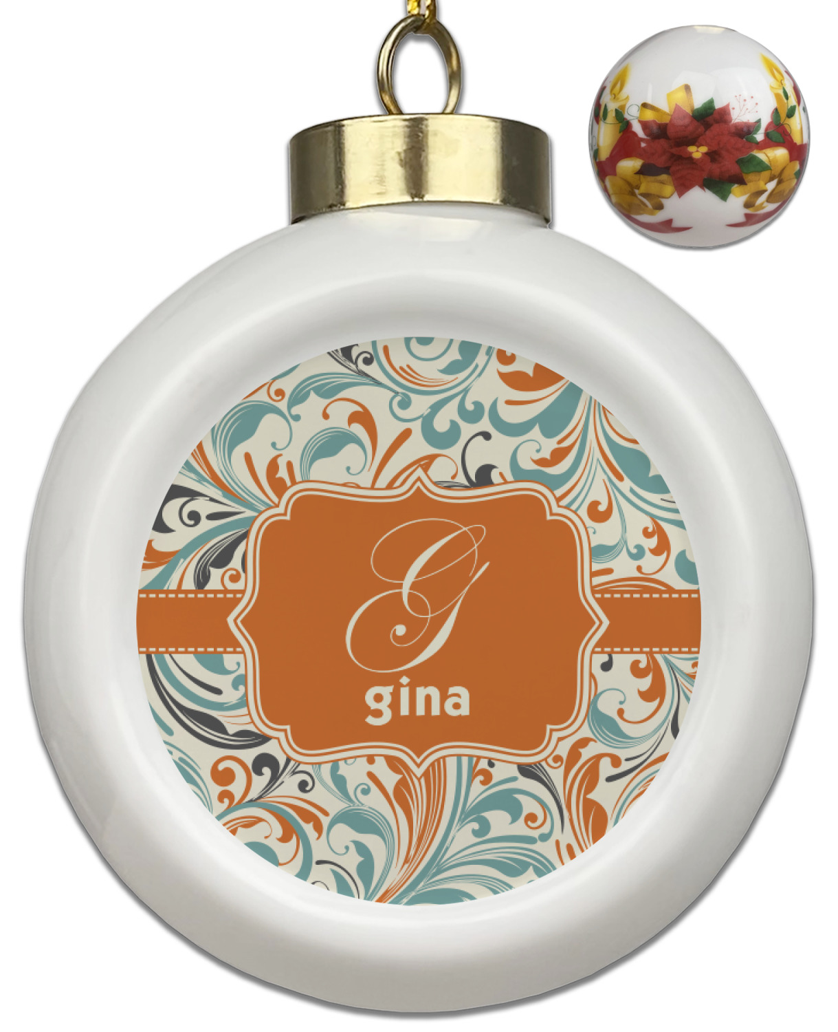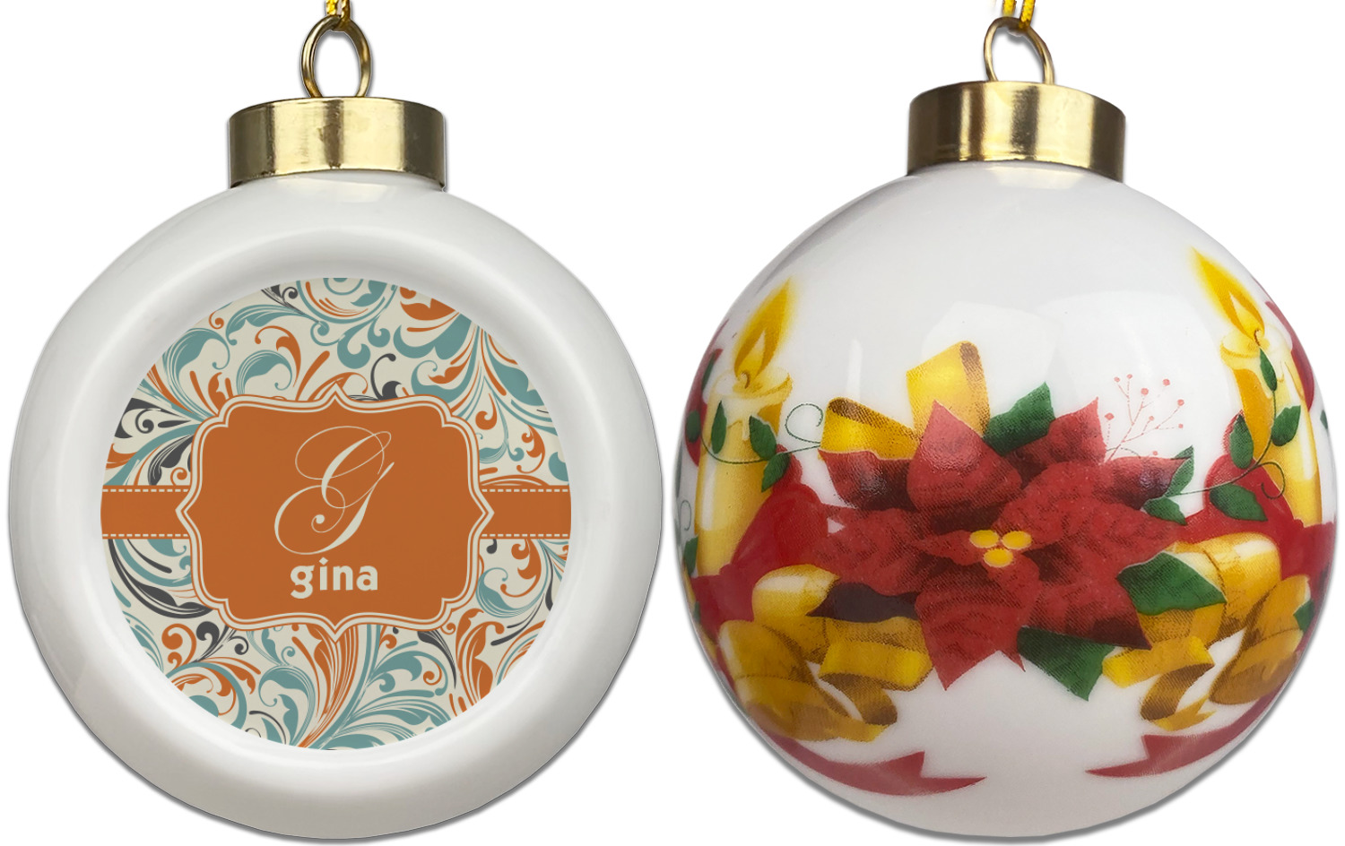 Our Christmas ornaments are a unique ceramic ball shape with a twist as it has a flat face to display your custom design! Select from one of our two design types - Christmas Tree or Poinsettia Garland - to adorn the curved back of your personal design. Each ornament measures 3H x 2.5W x 2D accompanied with a gold string accent for finishing touches to hang on your beautiful Christmas tree!