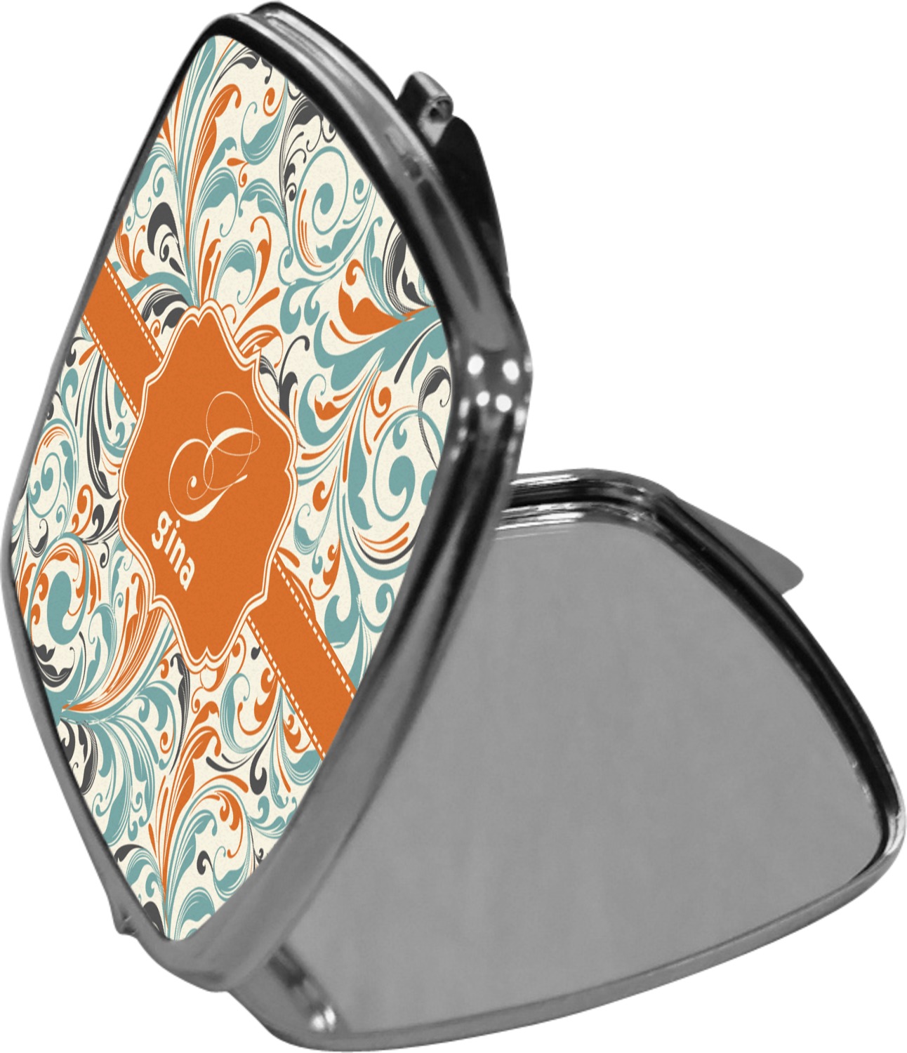 We offer many prints and patterns and many of our patterns are available in 45 different colors. You can personalized the compact mirrors with a name, a monogram or just an initial. We offer several different label, ribbon and font choices. Our customization system lets you create your very own custom & unique product and it lets you preview it before you purchase.