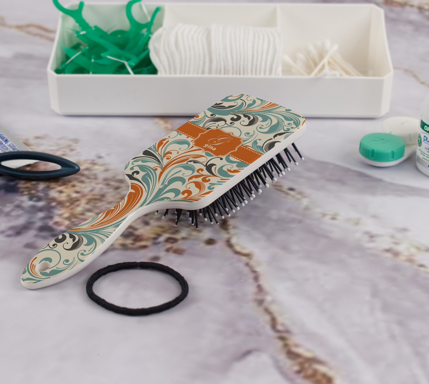Our paddle style customizable hair brushes are perfect for all hair types- straight, curly, wavy, long, short, thick or textured.