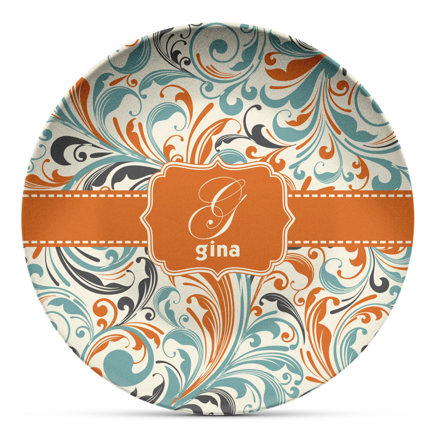 These plastic plates have the versatility, durability, and weight of melamine plates but are instead are made from a melamine-free composite, thermo-set, polymer plastic. These plates are made right here, in the USA, without the use of harmful chemicals, such as BPAs, formaldehyde, or DEHPs. Our elegant plastic plates can even withstand temperatures of up to 250 degrees Fahrenheit, for up to 60 minutes. The entire face of the plate exhibits your personalization in bright, vibrant color, and the plate's diameter measures at 10" long.